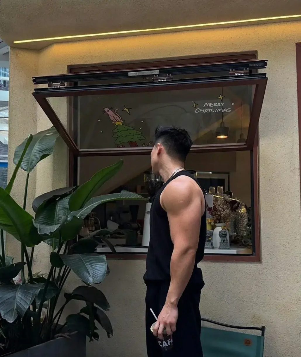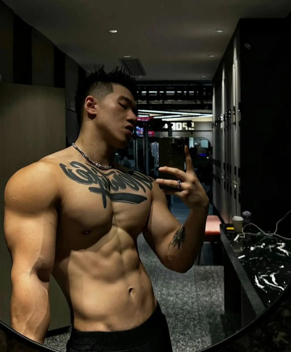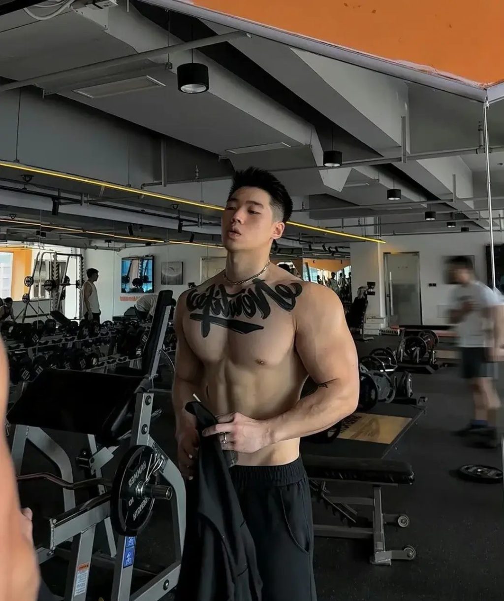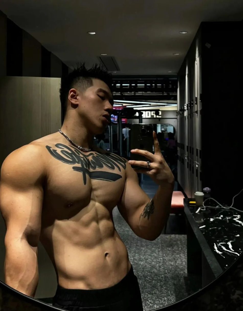 他的五官端正有型,寸头短发,看上去精神饱满,剑眉星目,俊朗非凡的外表,让他独有一股男人的魅力。宽肩窄腰的身材,流畅的肌肉线条,饱满又硕大的胸肌,坚硬如铁的腹肌,都显示出了男人高大魁梧的身材,他身上多巴胺的气息,都是他独特的男人味道。