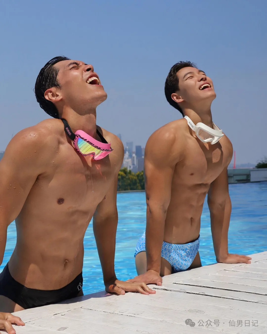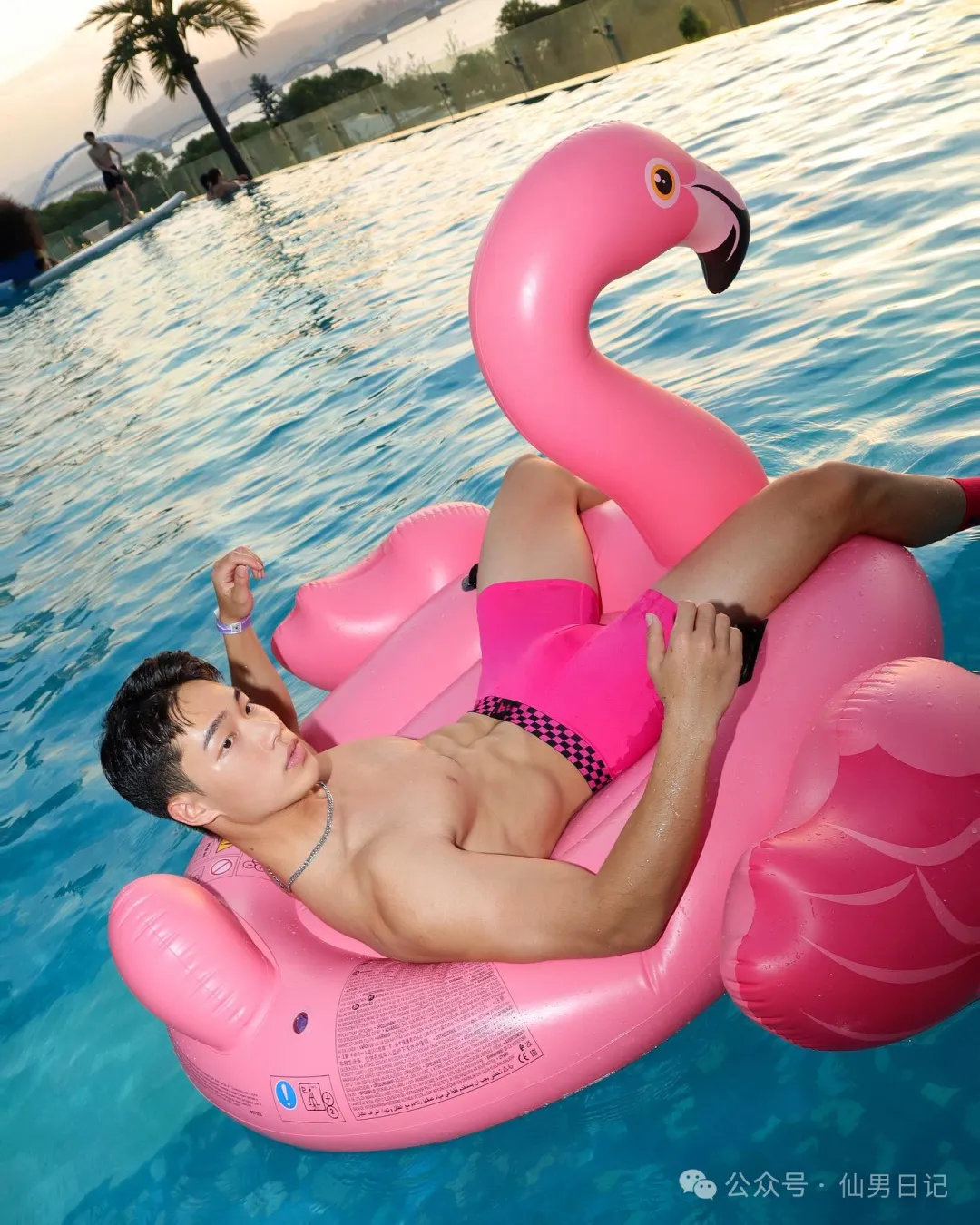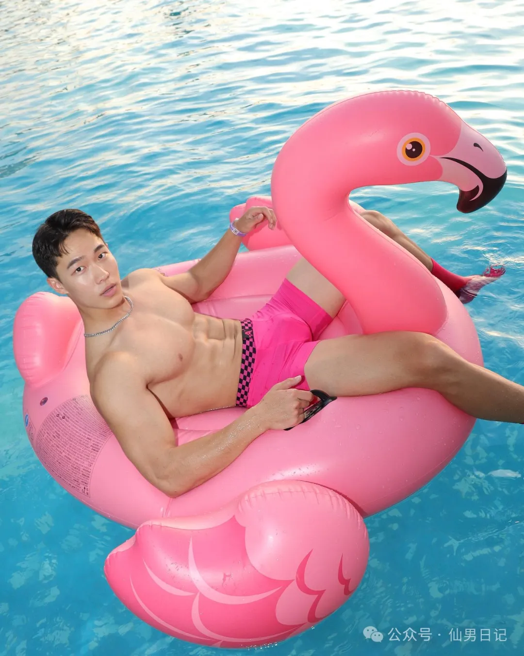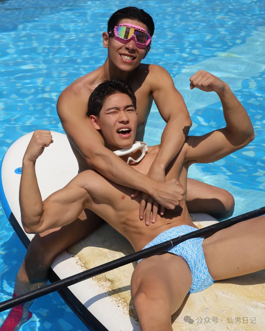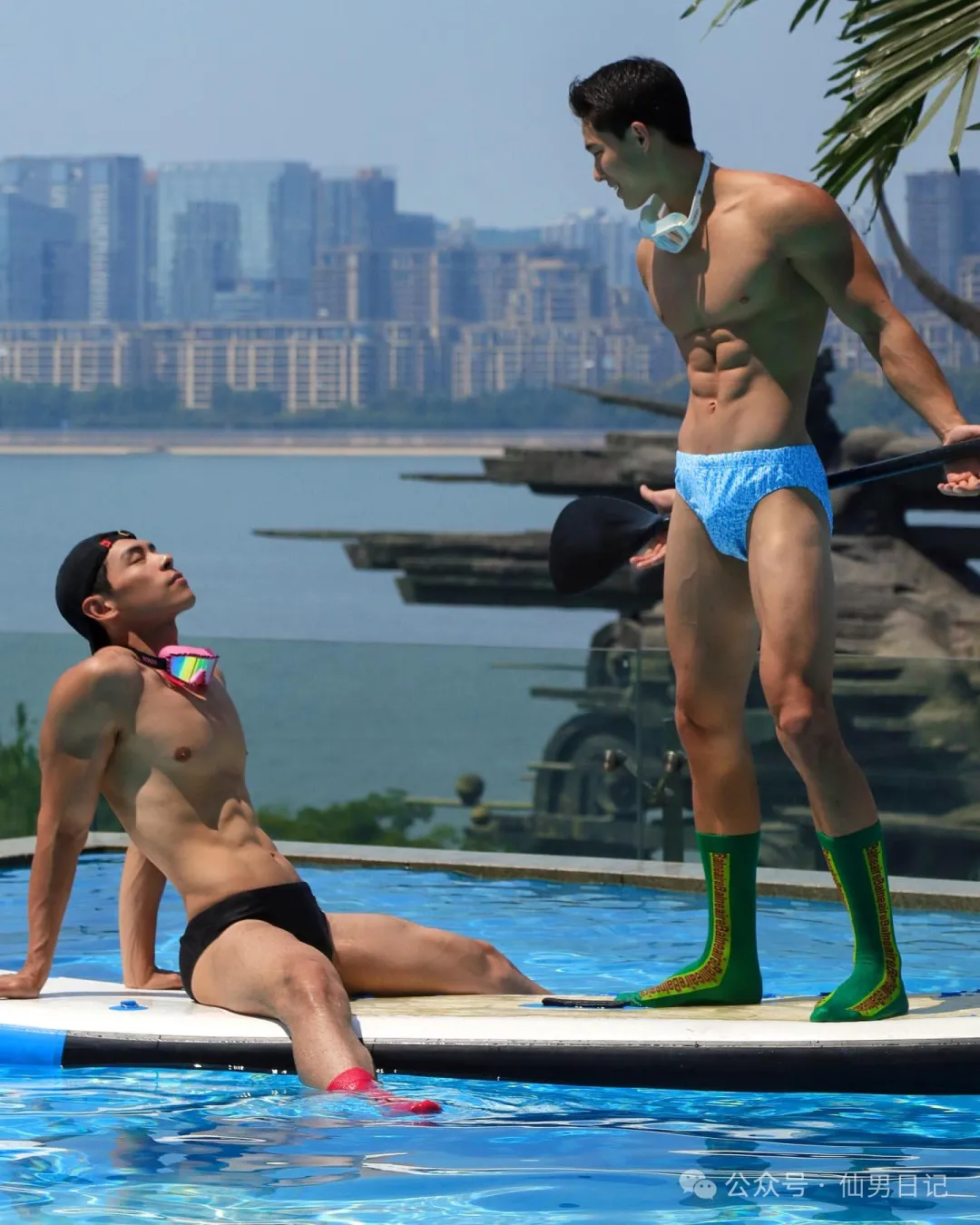 即便是和男模朋友拍摄互动,也是骚气的搭配,红色和绿色的极致搭配,视角效果直接拉满!黑皮腹肌体育生此时此刻具象化了,这样玩水的画面,真的很难拒绝诶!