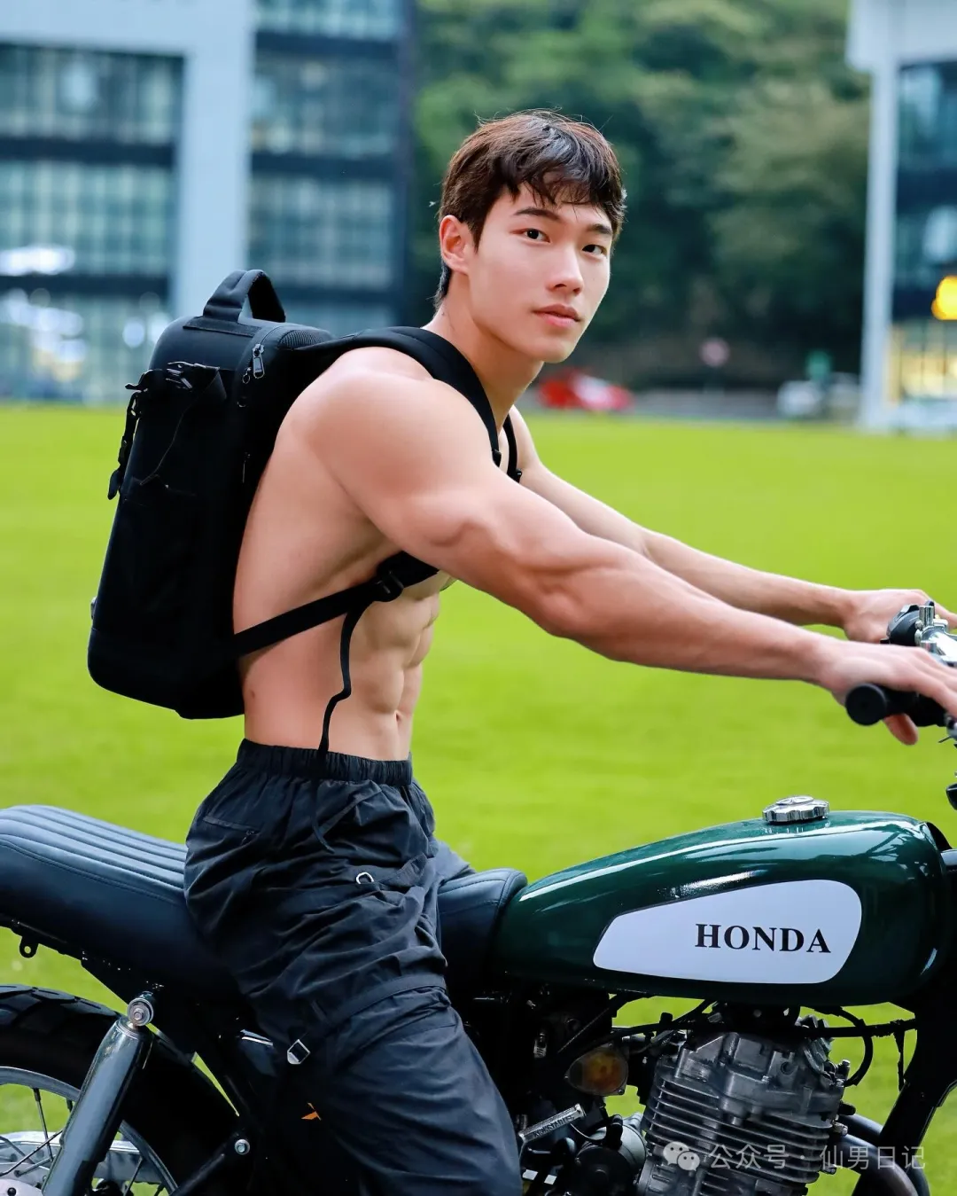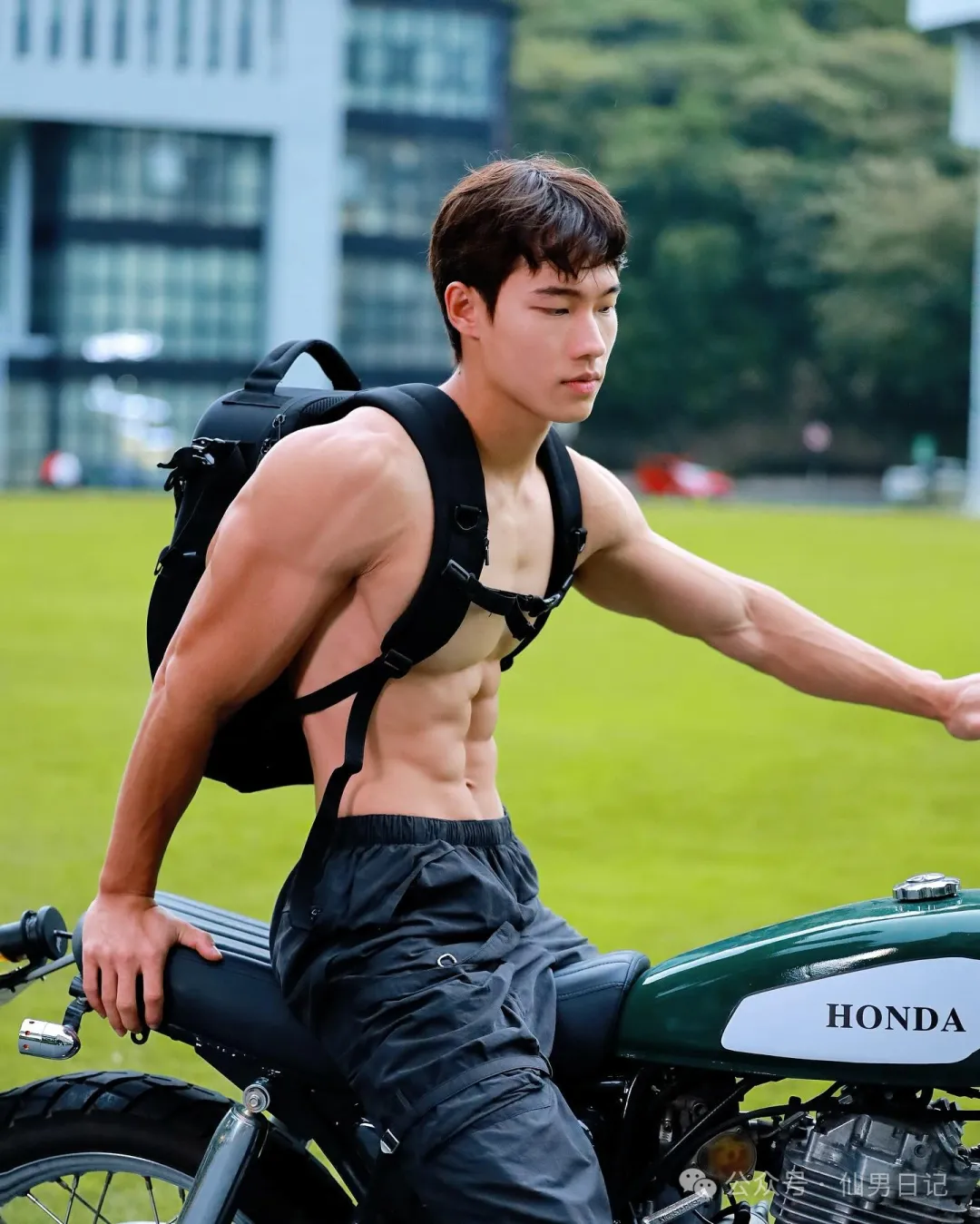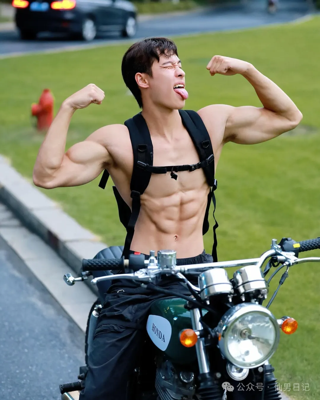 还有这组摩托车造型。我猜他不是真的要骑车,他就是在撩我……