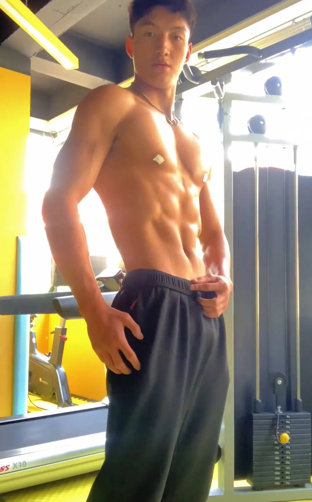 山西190CM体育生撩衣腹肌被摸,都爱长腿灰裤子!