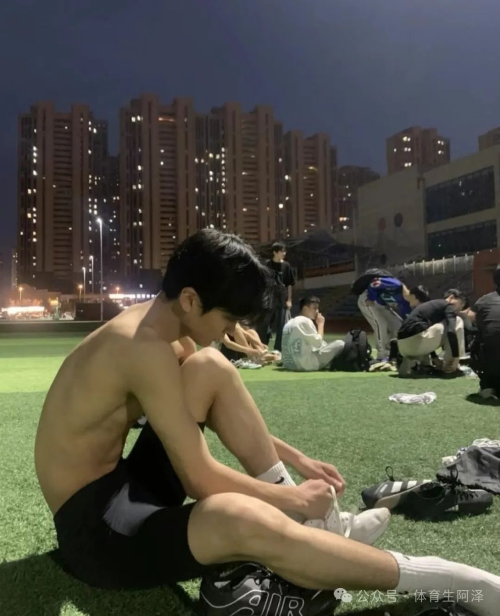阿泽市这张图开始注意到这个帅哥的,真的不要太帅了,腹肌白皮,加上白袜大长腿。在操场上满满的运动荷尔蒙。都说黑发yyds,这样少年感的体育生谁见了都会犯迷糊的吧!而且还是足球体育生,都说足球体育生比篮球体育生更耐,不知道是不是真的哈哈哈哈!因为足球场很大往往需要很多的运动量,所以一般来说耐力很足哦。
