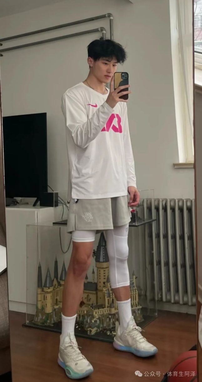 这个就是标准的篮球穿搭了。值得一提的是,原来体育生哥哥这么高啊!看起来得有189了吧!这腿长哇塞,好喜欢哈哈哈哈哈哈。真的是梦中情男了,不愧是被万千网友赞称的gay圈天菜了哈哈哈哈。这个白袜加黑皮大长腿,满满的侵略气息。怪不得体育生大都是篮球体育生,因为篮球体育生的穿搭是真的迷人啊!