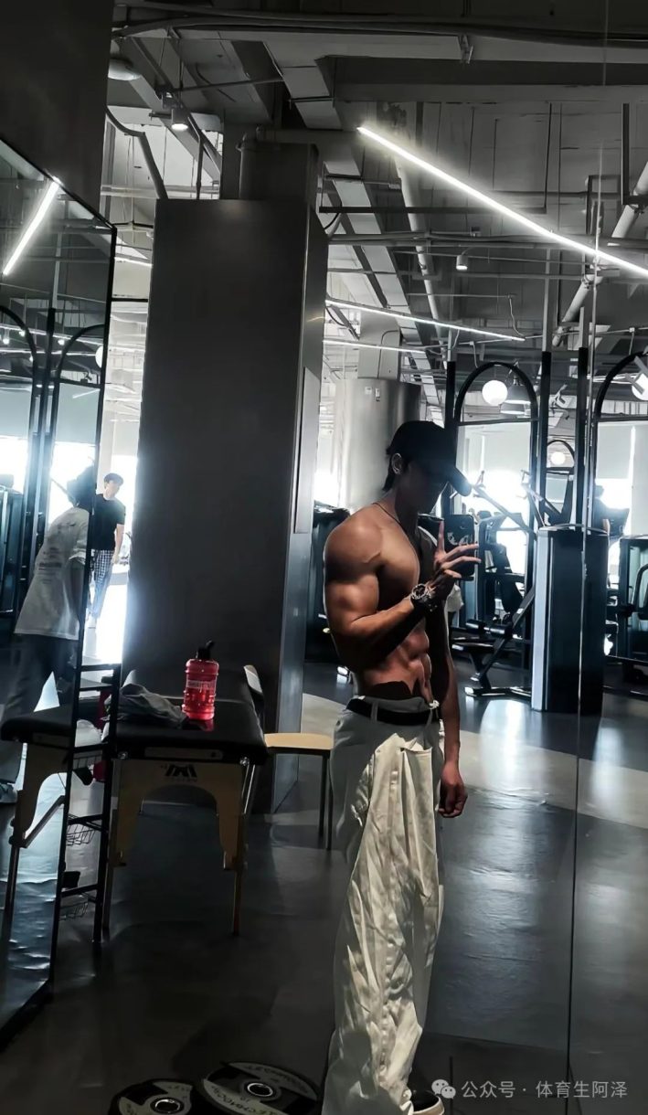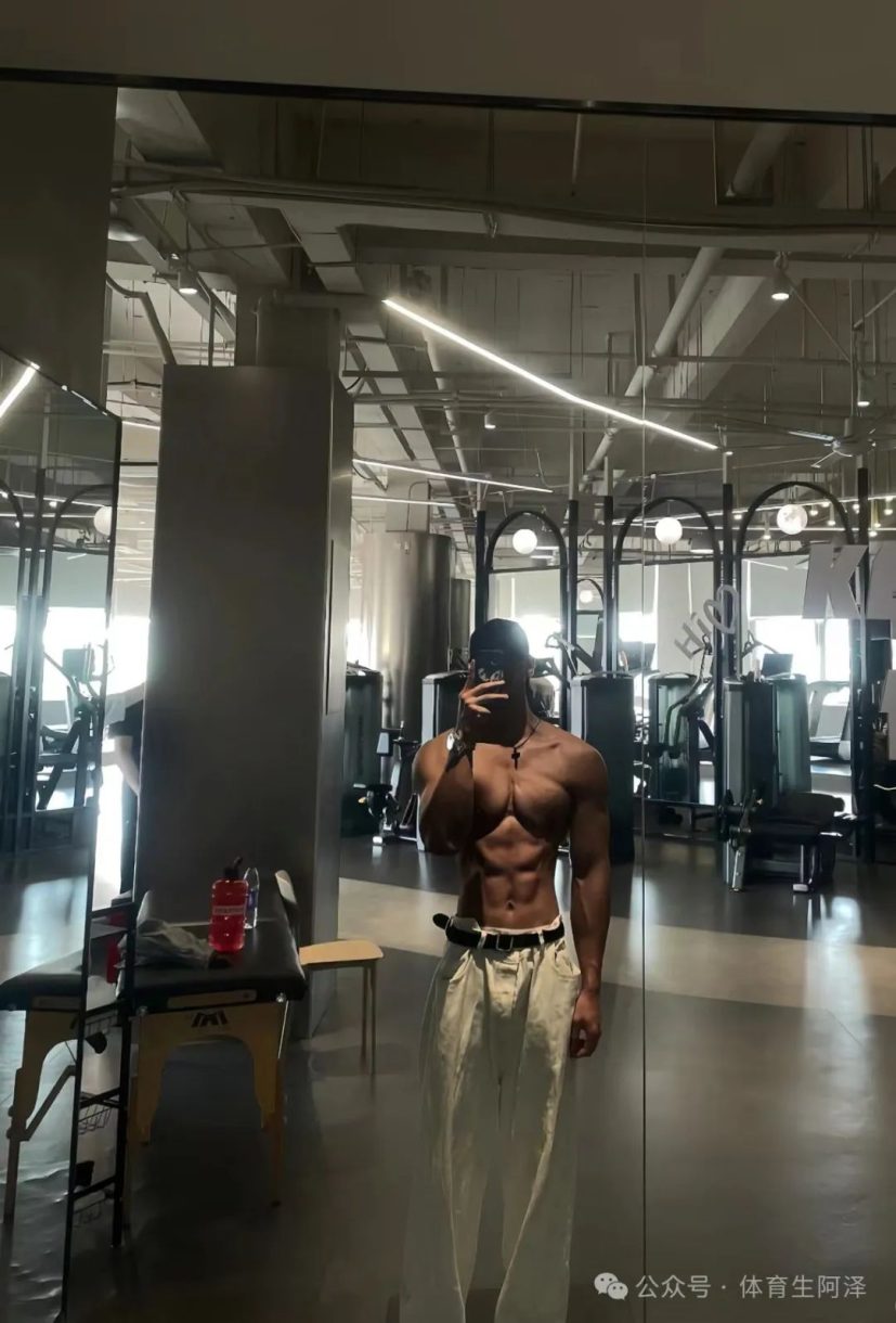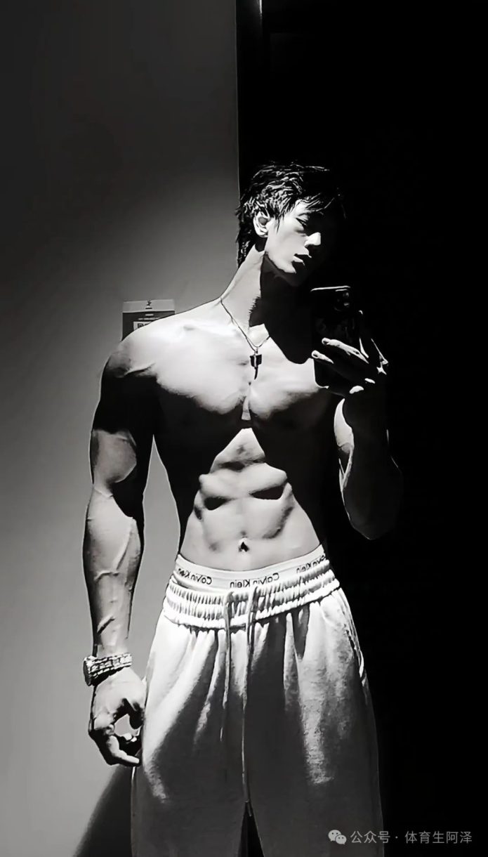 首先是因为这张图关注的他!因为阿泽首先看到的是这个饱满的胸肌啊哈哈哈哈哈,这个胸肌真的太少见了。他的形状有点像那种橄榄球啊哈哈哈哈,是那种弧度的,不是宽的,所以阿泽有点见色起意啊哈哈哈哈。新鲜感总是诱人的,而且这个腹肌太可了,这个明显的都快要凹下去了,还有就是腹肌和胸肌特别发达,然后显得腰非常长。看的阿泽流口水了哈哈哈哈。另外就是喉结有点明显啊哈哈哈哈哈,有点太突出了,肌肉都这么发达了,那么肯定很持久吧哈哈哈哈。
