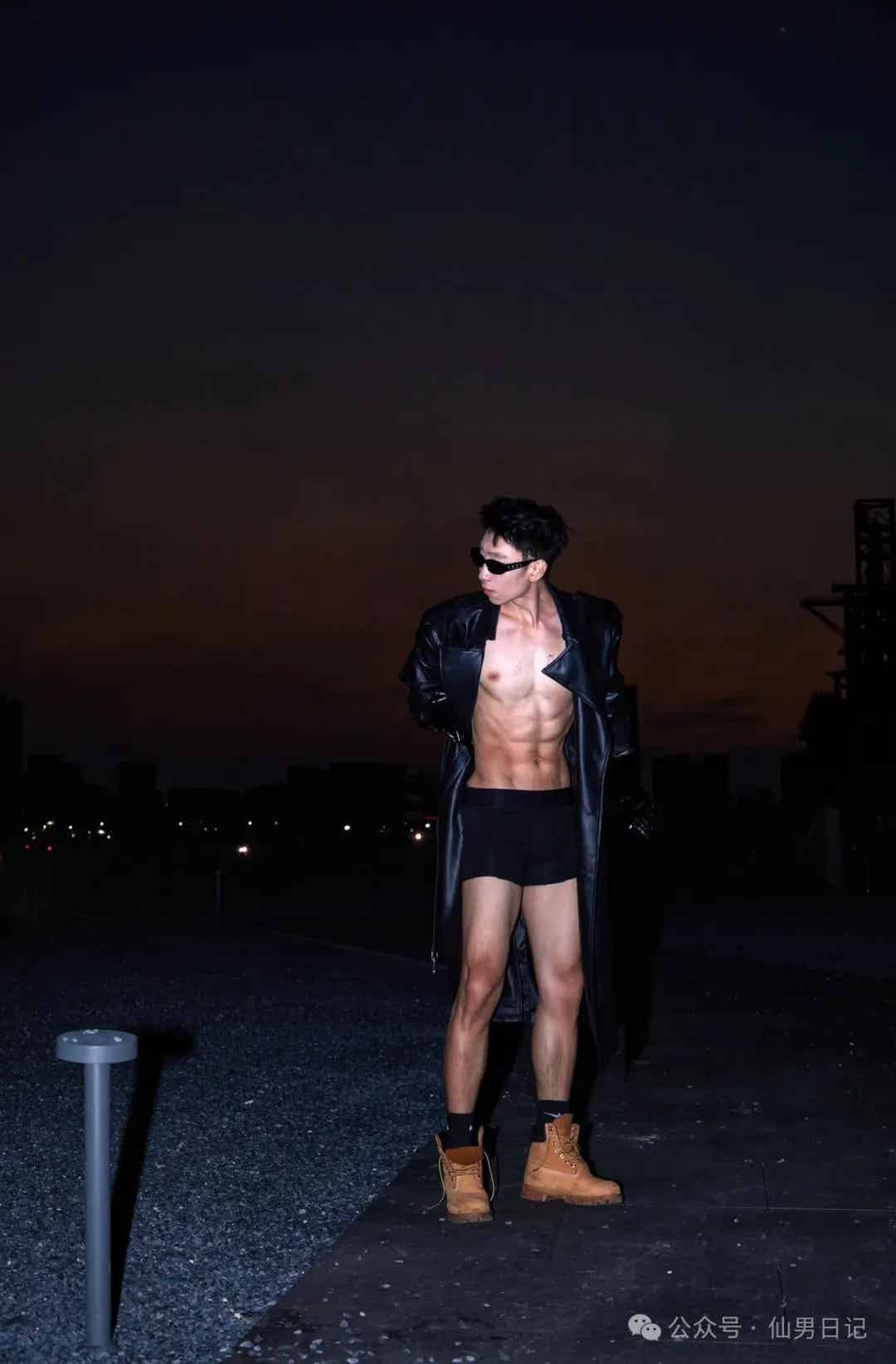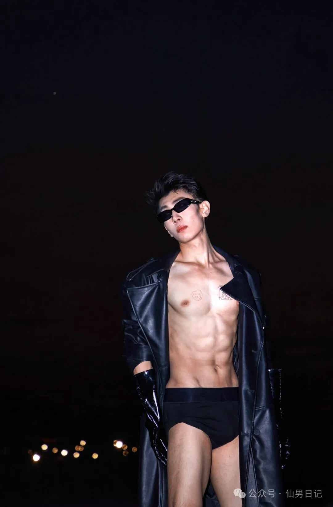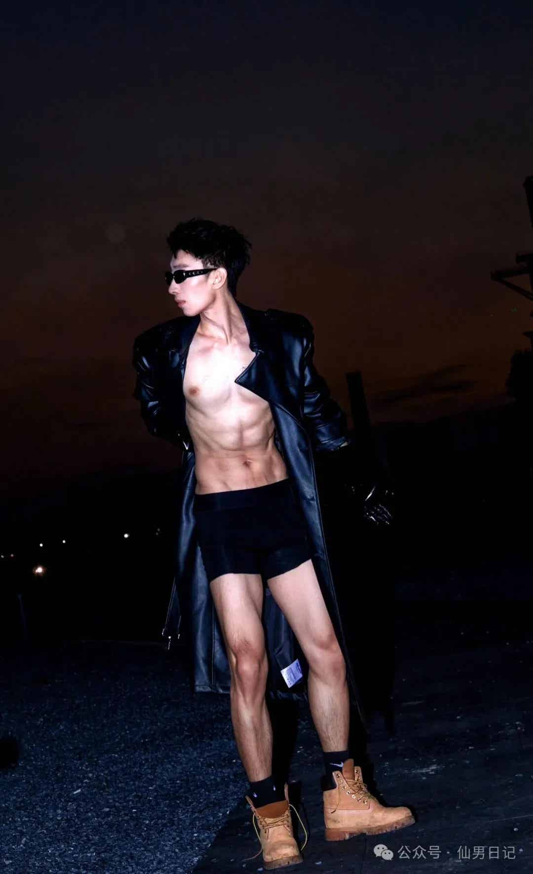小哥哥的这套照片真的可以说是封神的地步了。黑色皮夹克给人一种硬朗的感觉,而低腰设计则突出了腰部曲线美。整体造型既有男人味儿又有潮流元素。但是!最让人惊喜的是,小哥哥选择了一件黑色皮夹克搭配同色系内裤。穿着条内裤就出门了,这不是明晃晃的诱惑吗!