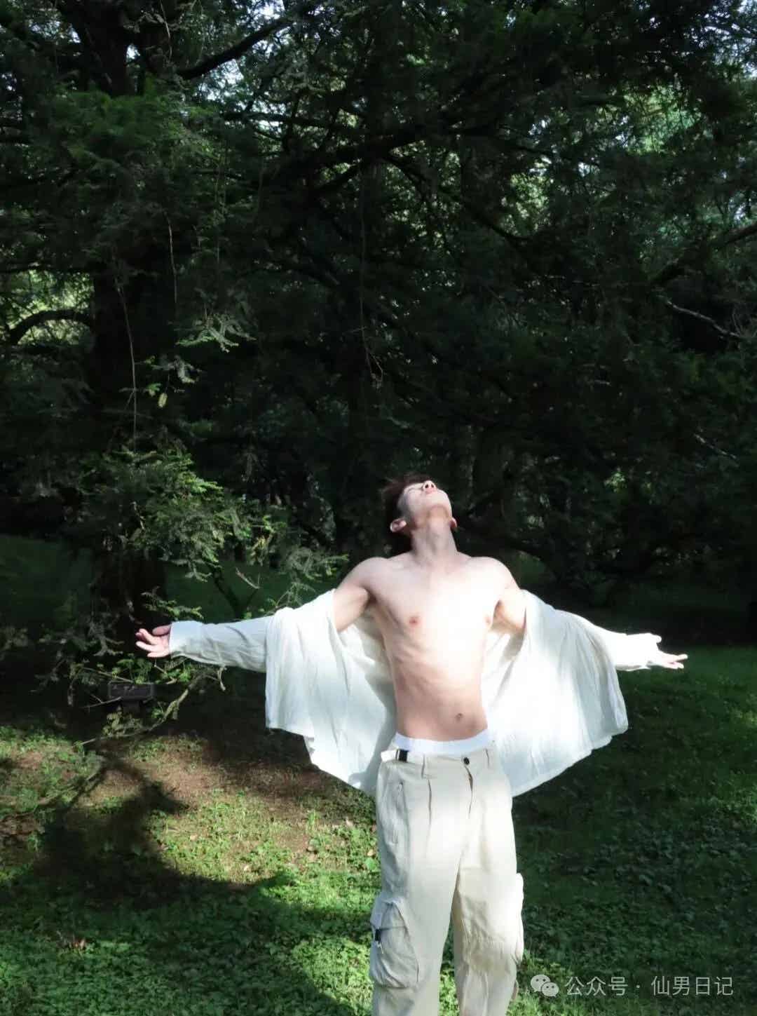 当然,小哥哥的日常生活还是很正常的。郁郁葱葱的树木之间,上身赤裸,露出健硕的肌肉线条,腹部平坦紧实,衬衫敞开,随风飘动,增添了几分动感和自由的气息。鼻梁高挺,下巴线条清晰,散发出一种阳刚之气这一刻,薄肌体育生真的具象化了。