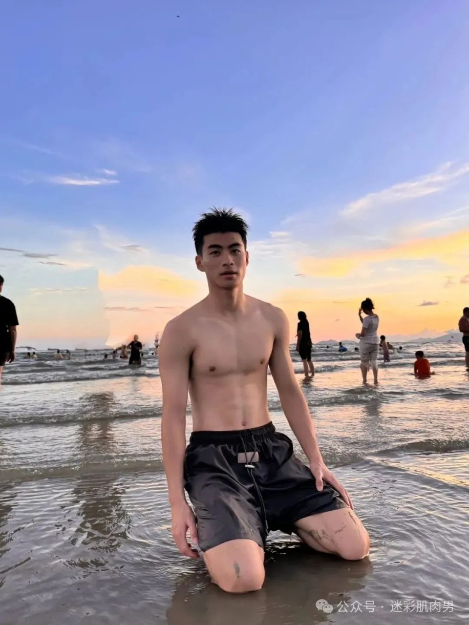 他的肌肉线条明显而流畅,仿佛是雕塑大师手中最得意的作品。每一块肌肉都充满了力量和活力,仿佛在诉说着他背后付出的辛勤汗水和不懈努力。宽阔的胸膛、结实的臂膀、紧致的腹肌,无一不让人感受到他强大的体魄和坚定的意志。而那修长有力的大长腿,更是他身材的一大亮点,不仅赋予了他出众的比例,更展现出他在运动中所积累的爆发力和耐力。