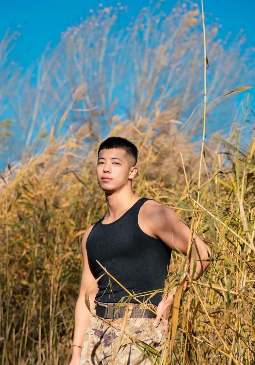 今天黑皮给大家介绍这位秋日里秋高气爽,芦苇荡里的帅气寸头兵哥哥!