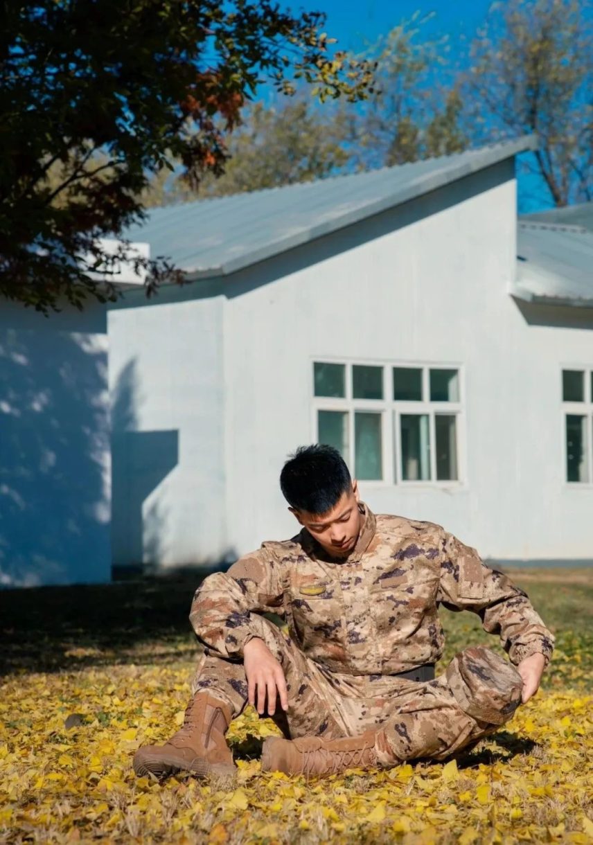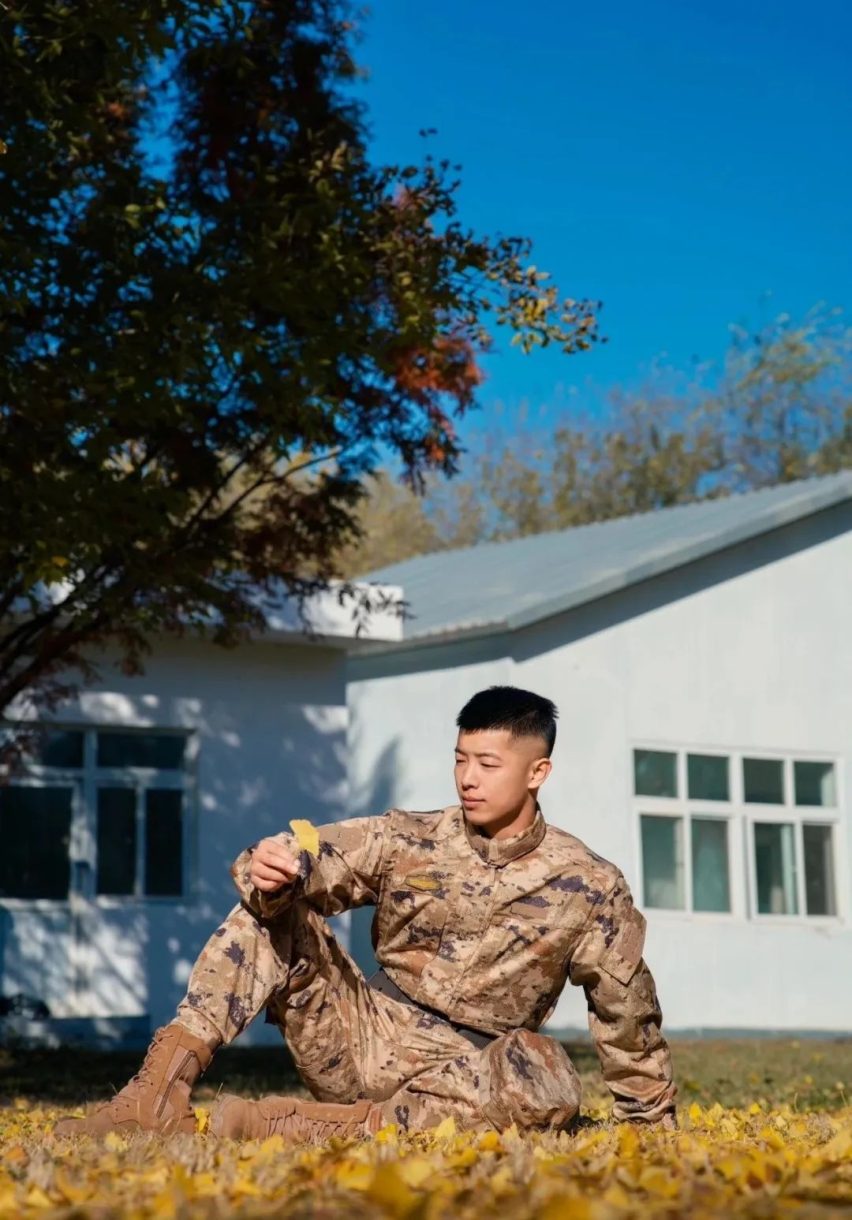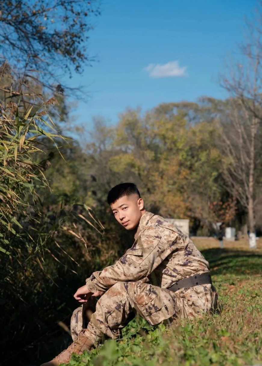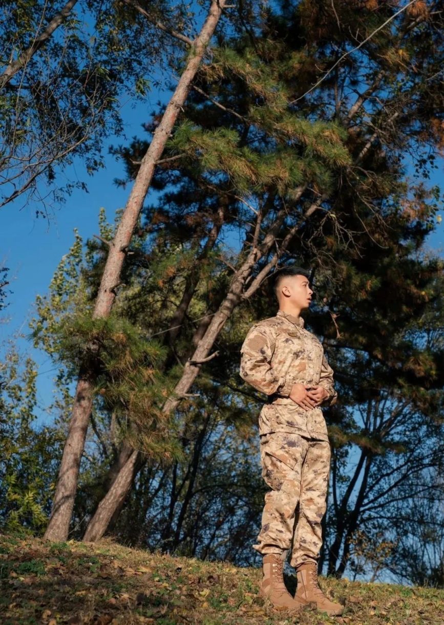 他那寸头,彰显着利落与坚毅,仿佛是他勇往直前精神的外在体现。而那一身迷彩服,紧紧包裹着他结实的肌肉,每一块肌肉都在迷彩的映衬下更显力量。