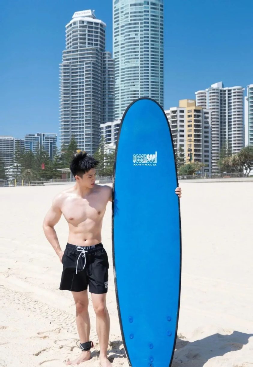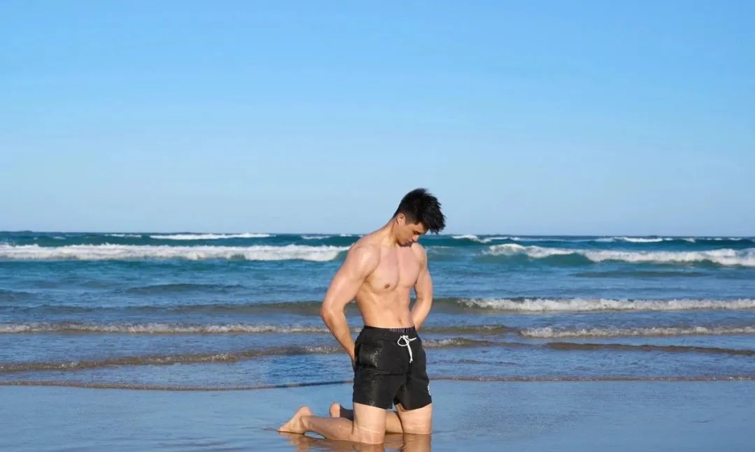 与普通直男千篇一律的拍照风格形成鲜明对比。他懂得如何巧妙地利用光线和角度,展现自己的优点。或站在沙滩上,迎着海风,微微侧身,露出迷人的微笑;或坐在冲浪板上,眺望远方,那深邃的眼神仿佛藏着无尽的故事。每一个姿势都像是一张时尚大片,充满了艺术感和高级感。