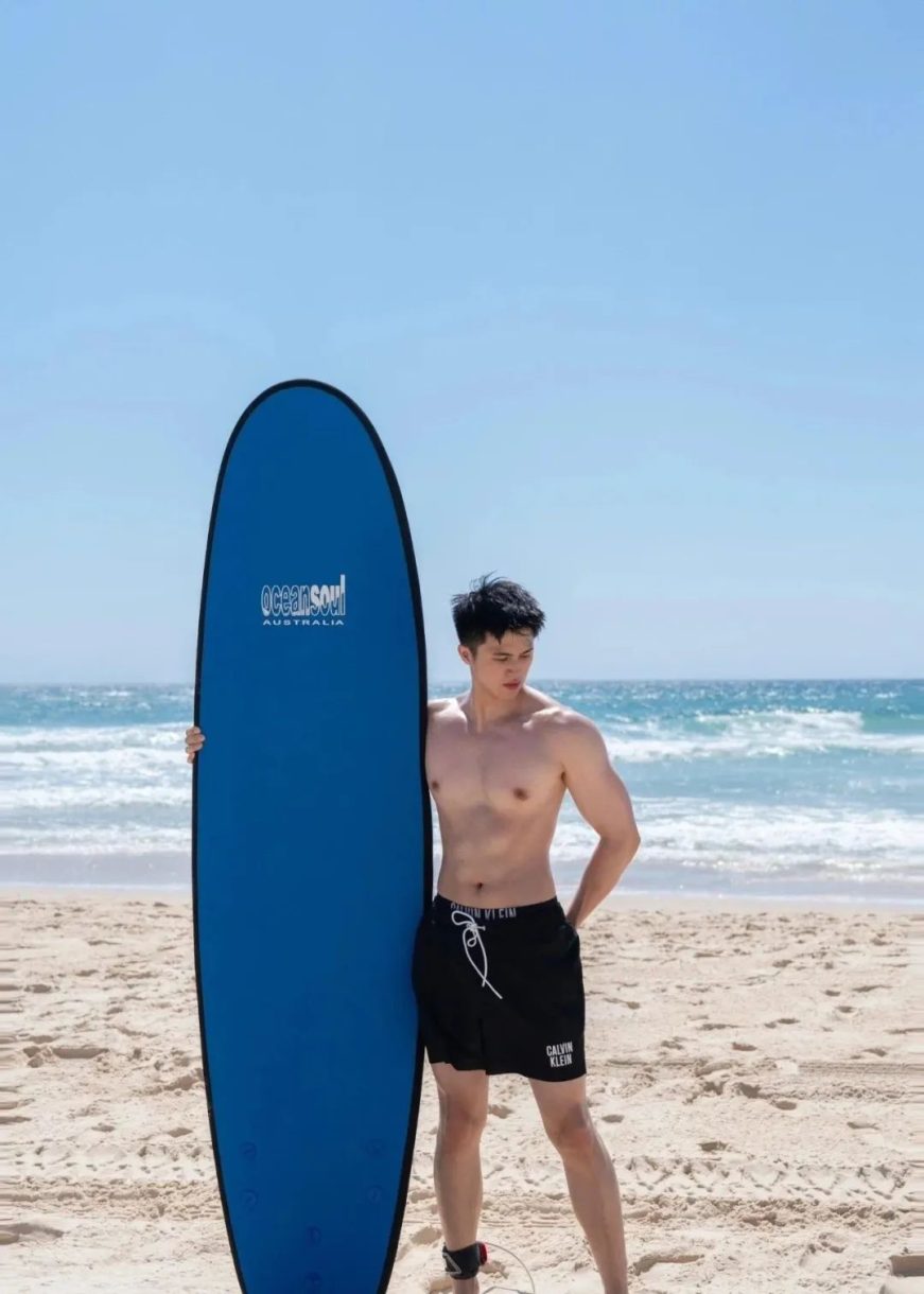 当看到这位海边帅哥的第一眼,他如圣体般的泳装造型,以及在冲浪时展现出的自信与活力,瞬间抓住了大家的心。他的宽肩窄腰神颜泳装造型,仿佛是从时尚杂志封面走出的模特。