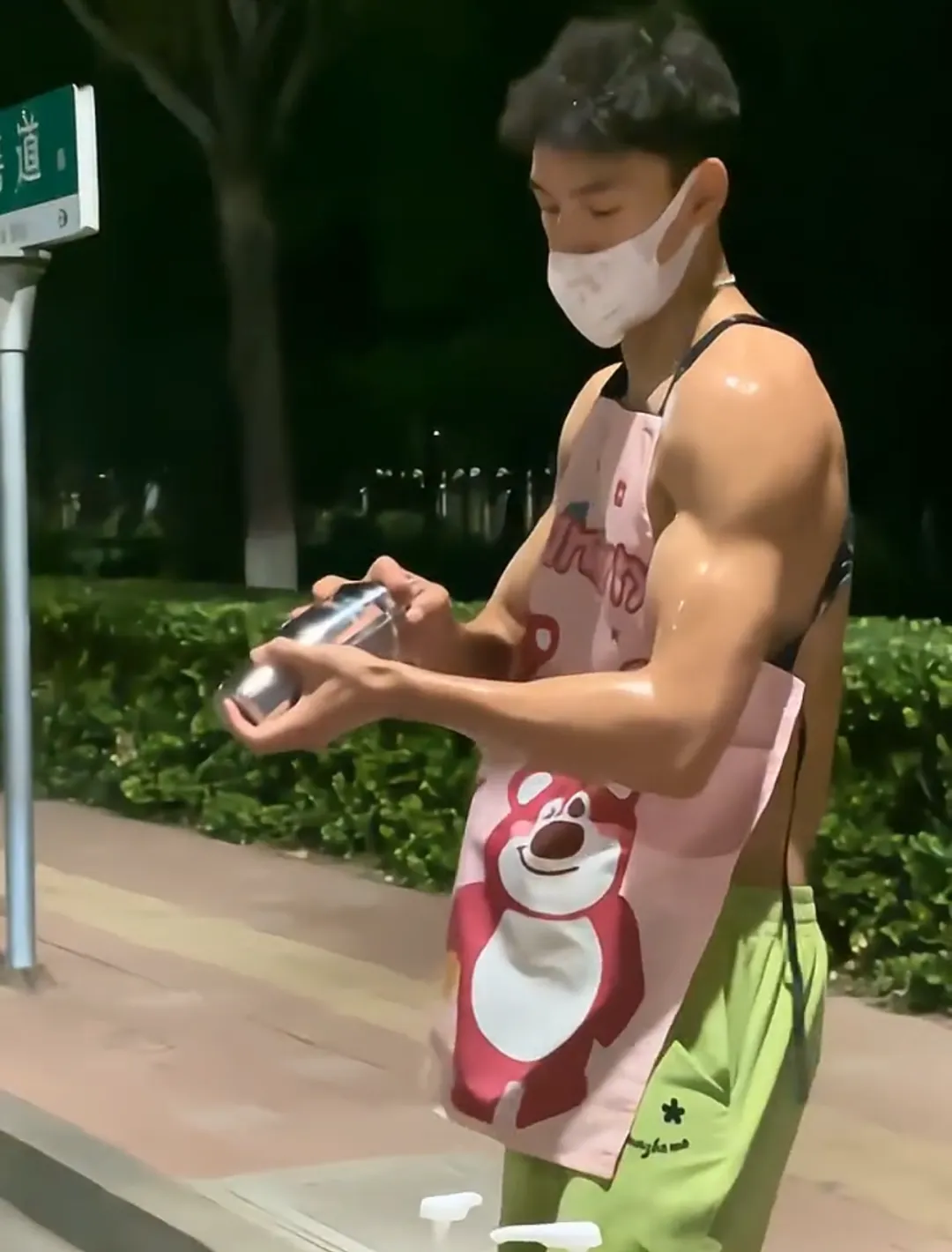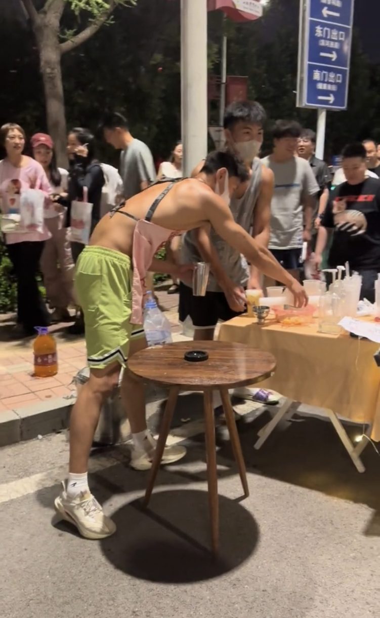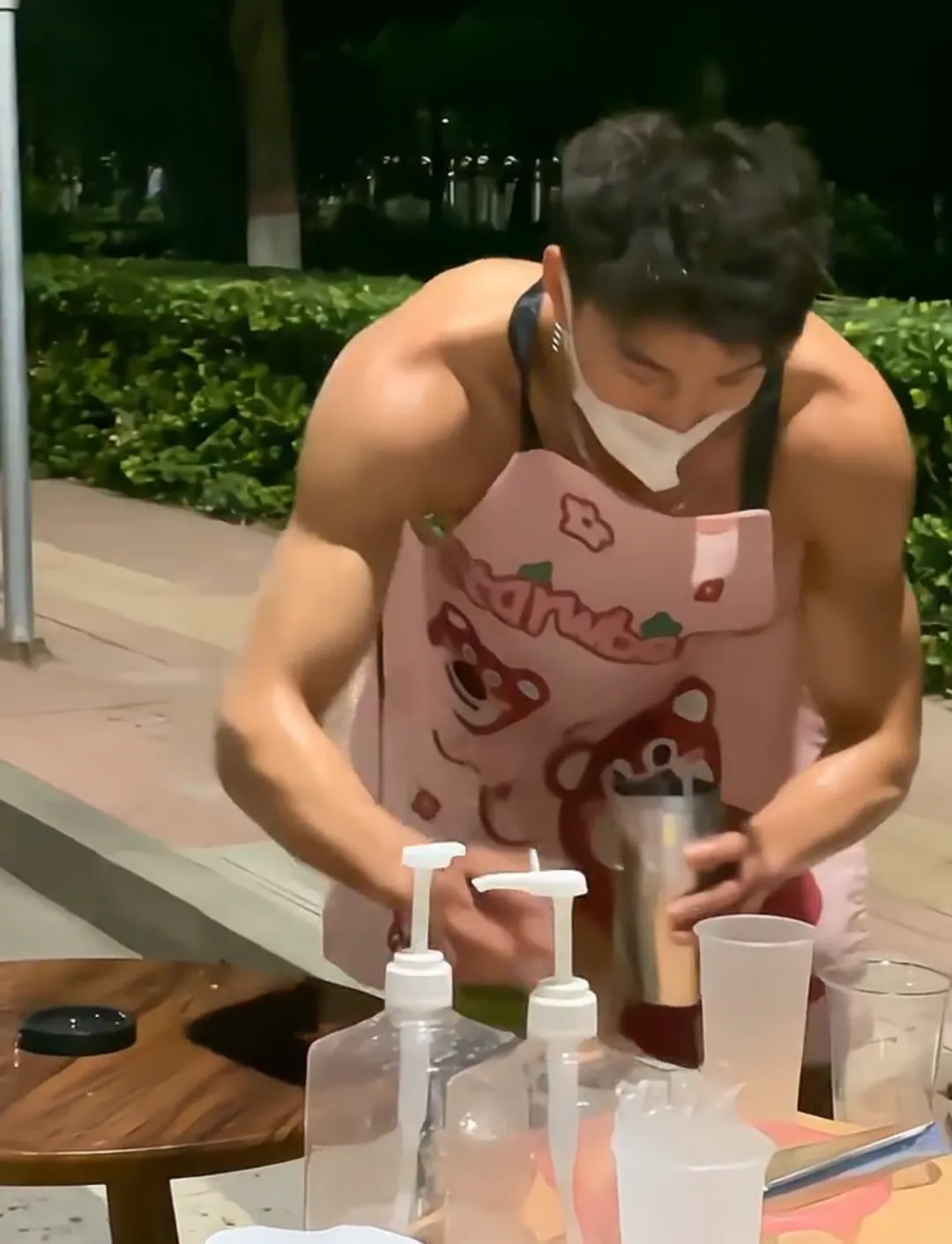 很多网友纷纷拿出手机来拍摄肌肉小哥频率超快的手打柠檬茶过程,不由得会想象到很多更美好的画面。
