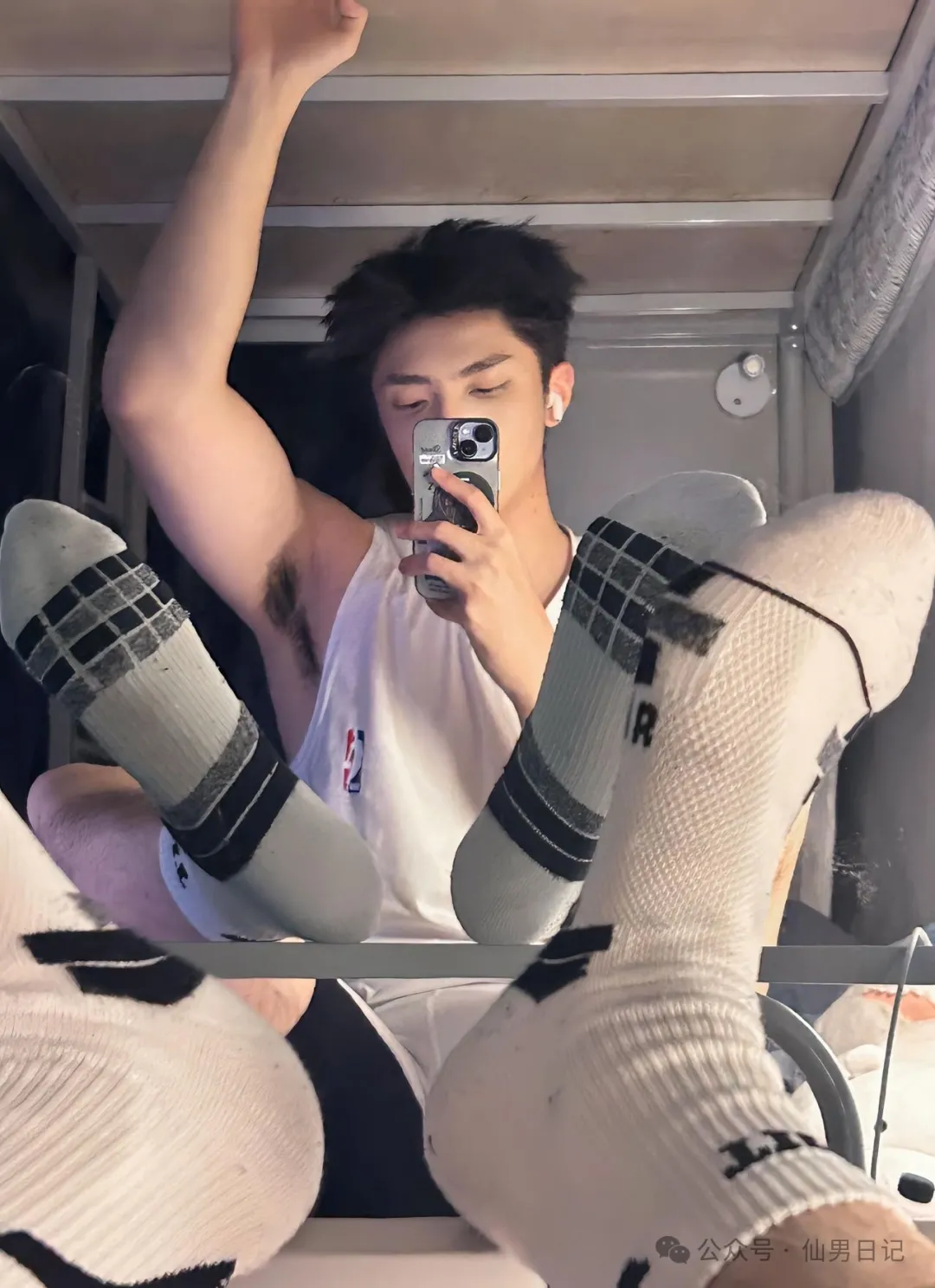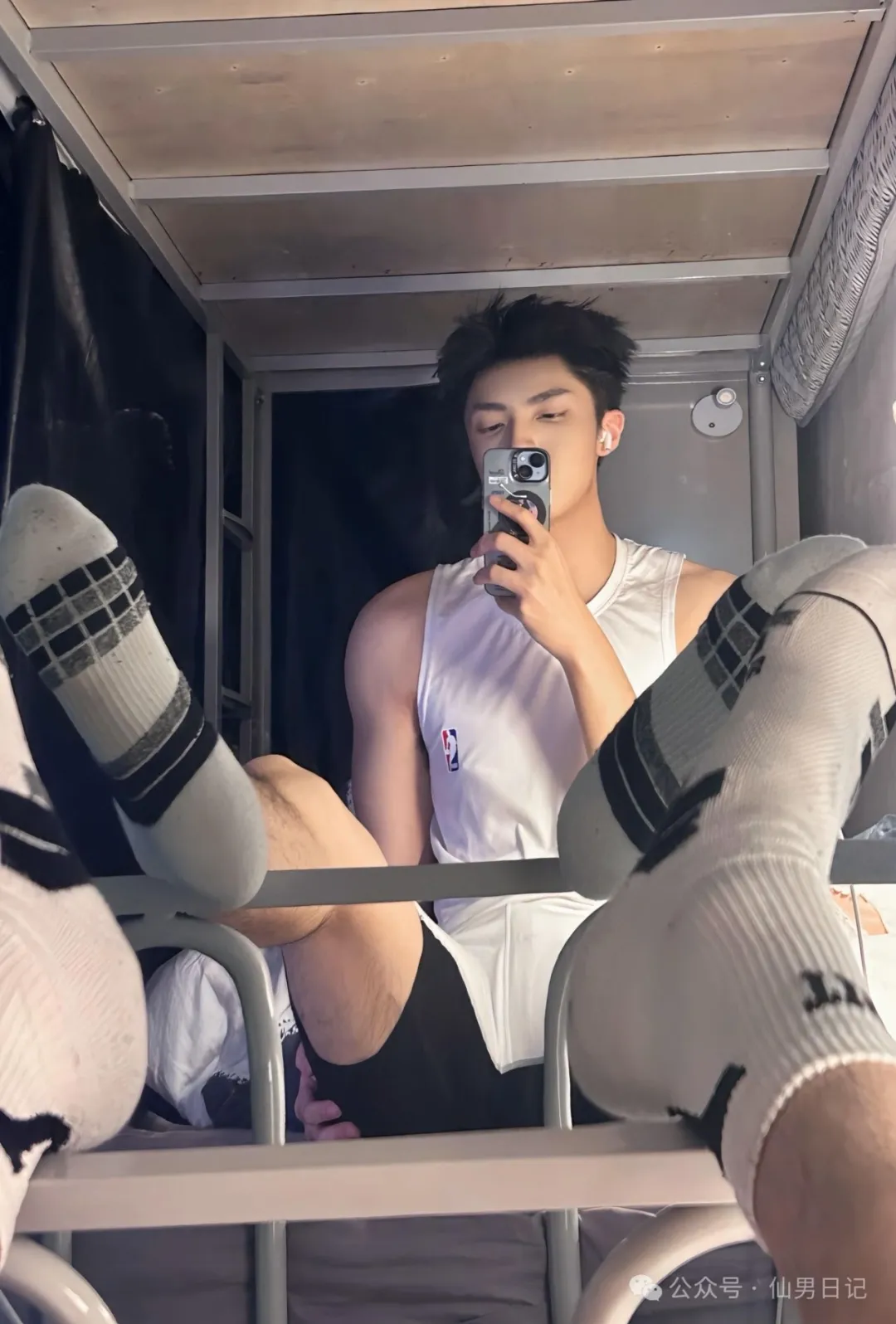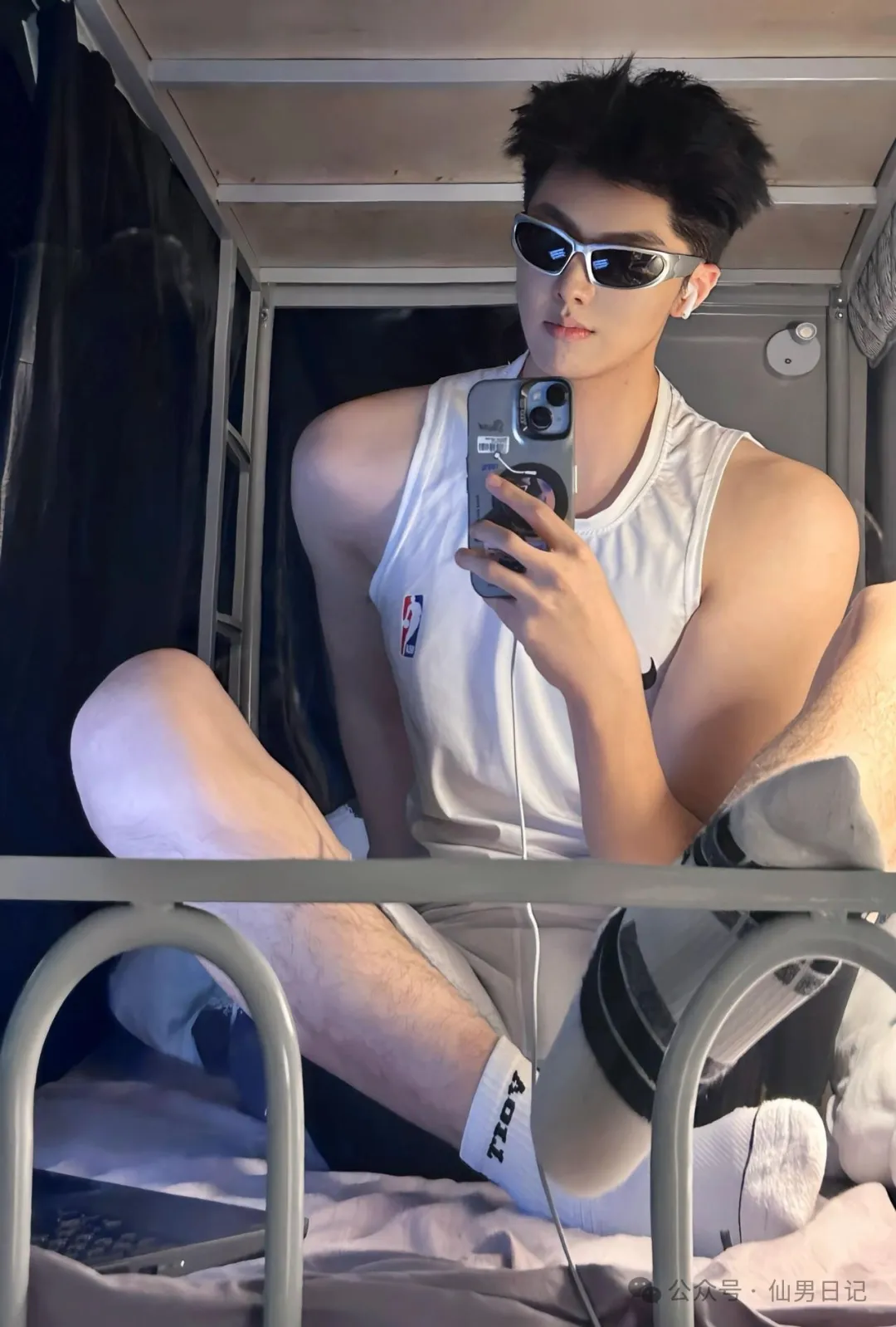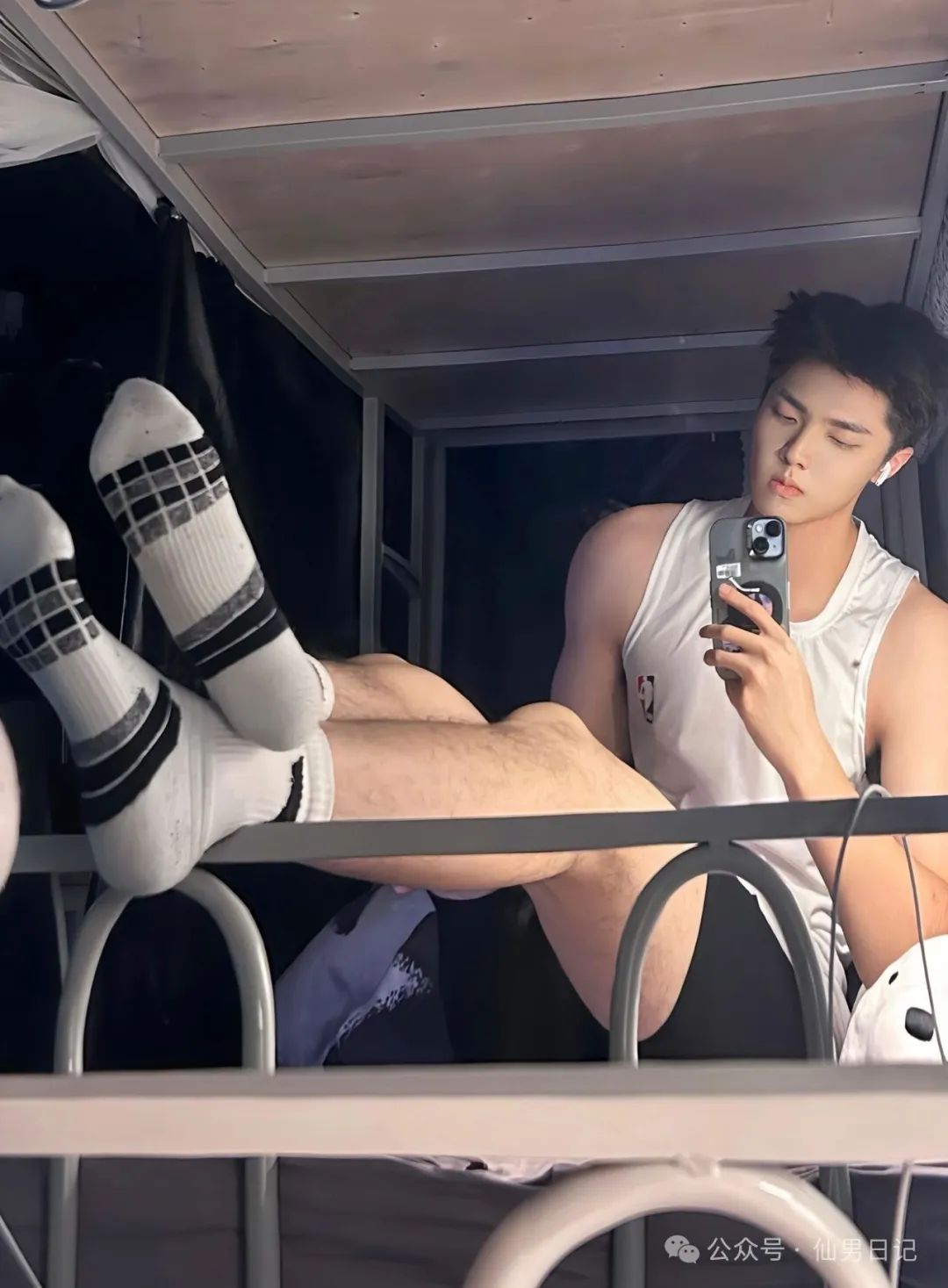 hello宝宝们!每天晚上8点来仙男日记看帅哥啦~最近一个陕西体育生在宿舍自拍被疯传,小哥哥穿着紧身背心,一边秀自己的大长腿,一边秀自己的白袜……190cm的优越身高感觉能把这张床撑爆了!但是最让网友们惊喜的还是他的颜值,网友更是直言:凡里凡气!