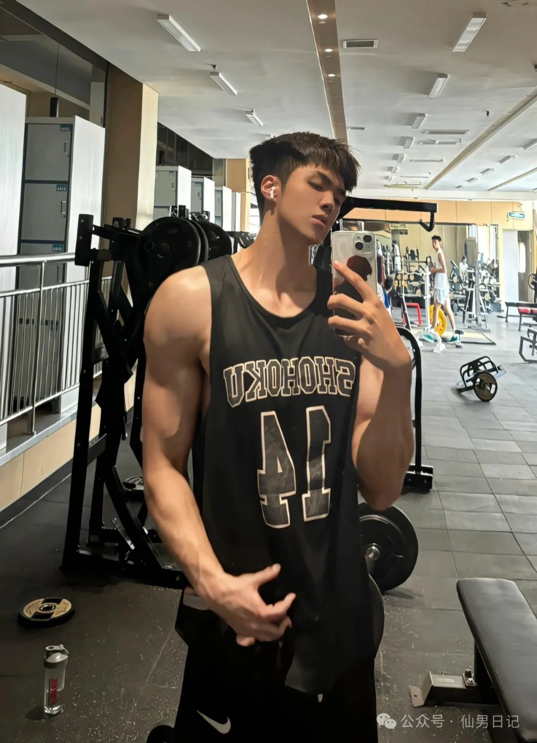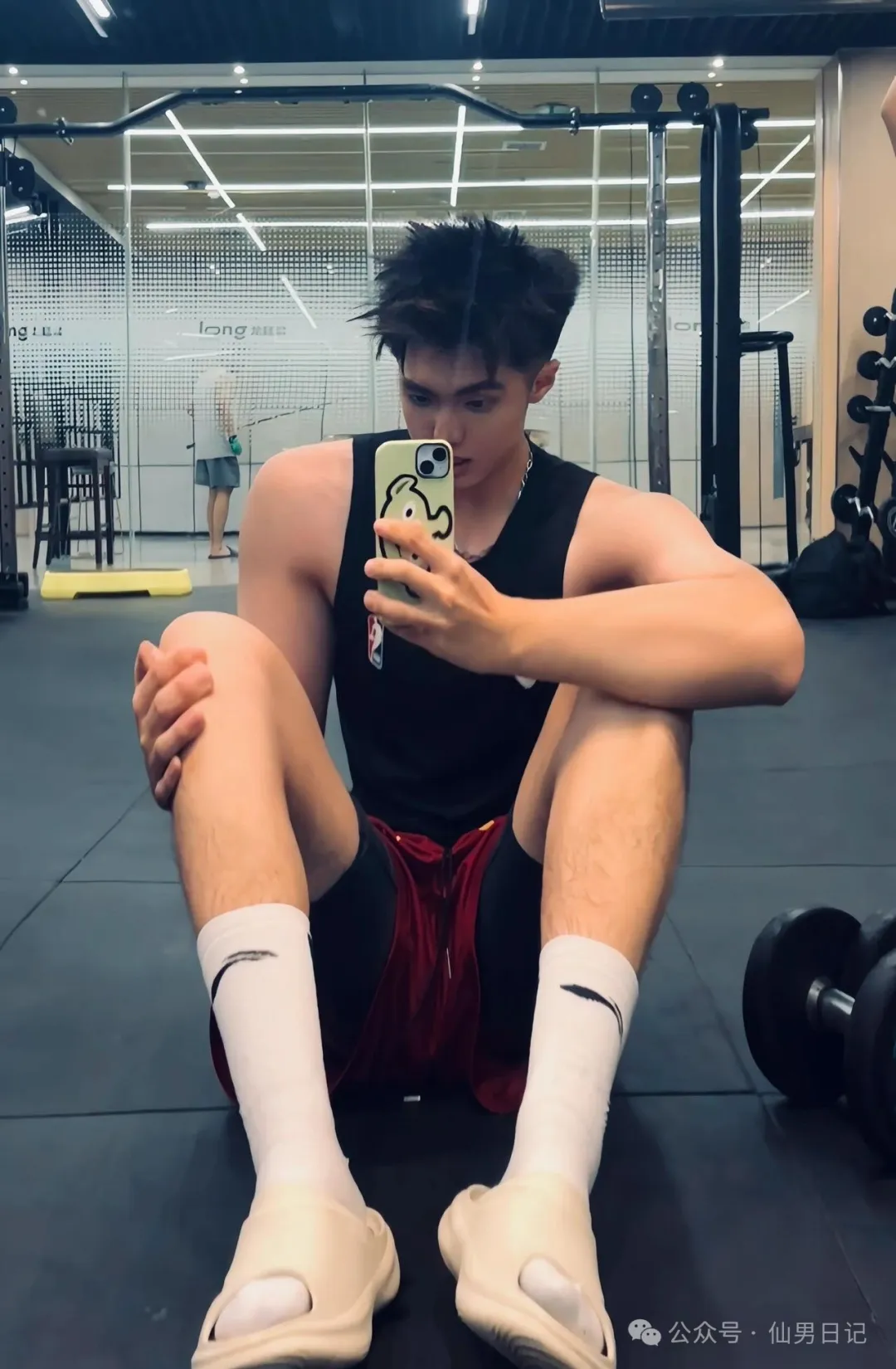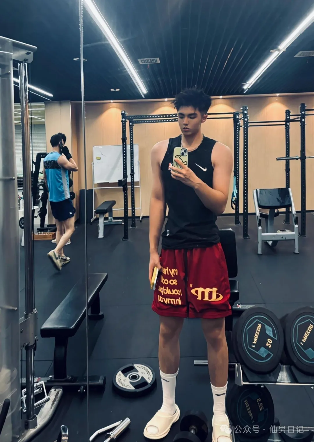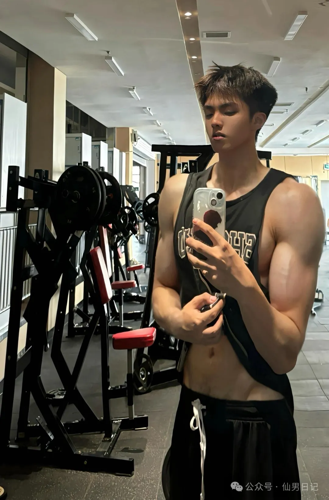 最后必须再推一波小哥哥的健身房自拍,不仅完美地展现了超高颜值,优越的身高也展露无遗。这样的体育生男大,你喜欢吗?