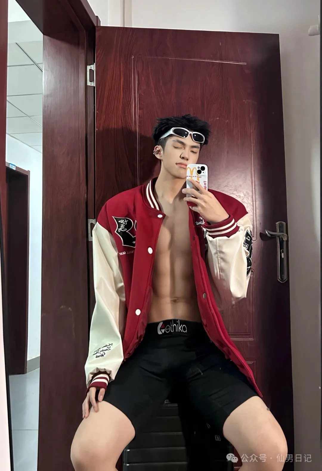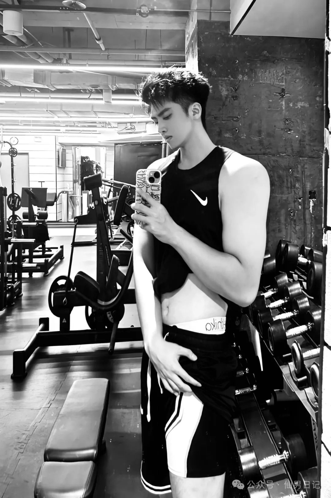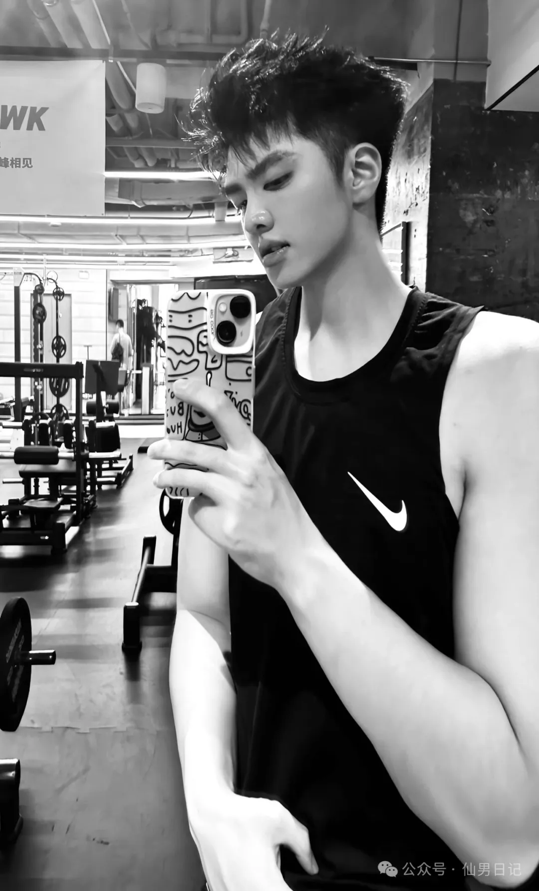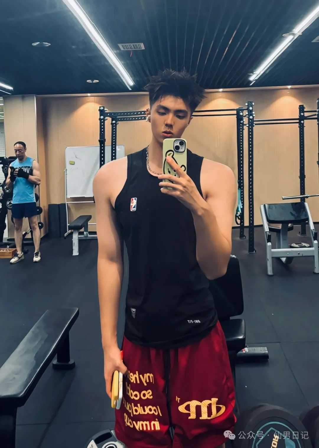 最后必须再推一波小哥哥的健身房自拍,不仅完美地展现了超高颜值,优越的身高也展露无遗。这样的体育生男大,你喜欢吗?
