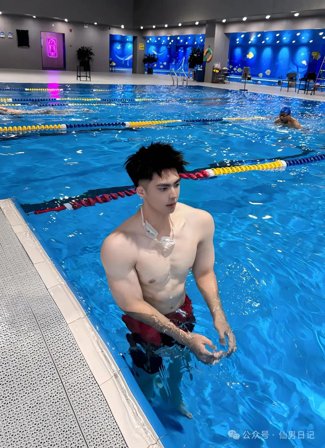 小哥哥也po了一波自己运动的照片,泳池里的他白到发光!站在泳池边上,他的身材线条流畅,肌肉线条若隐若现,展现出一种健康而有力的美感,身材方面,他真的是无可挑剔。不仅是胸肌和腹肌,小哥哥的翘臀也超性感,真的爱了!