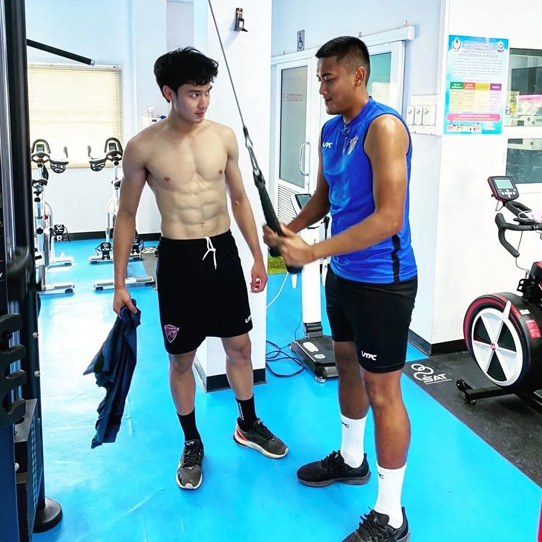 泰国足球运动员Tee Wongsajaem更卷,除了日常训练以外,还会跑到健身房坚持锻炼。