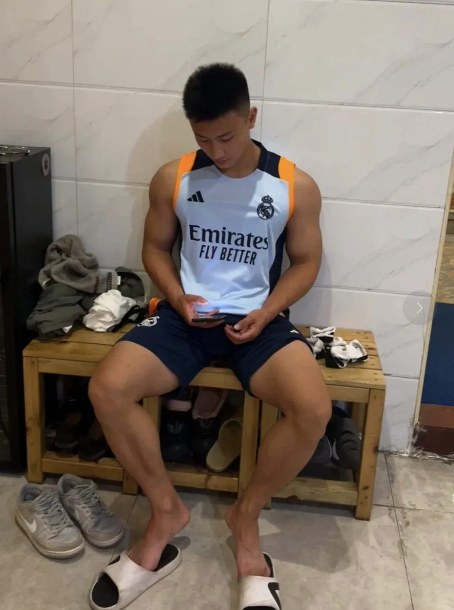 体院的环境,本就是一个充满阳刚之气的地方。在这里,男孩子们通过各种体育项目的磨练,塑造出了强健的体魄。而这位寸头肌肉男大更是其中的佼佼者。他那寸头造型,简洁而干练,凸显出一种利落的帅气。每一块肌肉都像是经过精心雕琢,在阳光的照耀下,线条分明,充满了力量感。这肌肉并非单纯的视觉展示,而是无数汗水浇灌的成果,是在体院的训练场上一次次拼搏、一次次突破自我极限的见证。