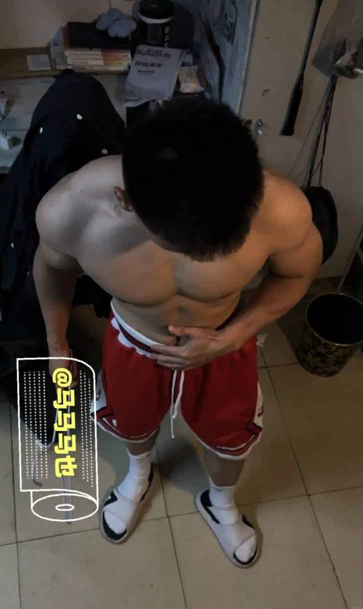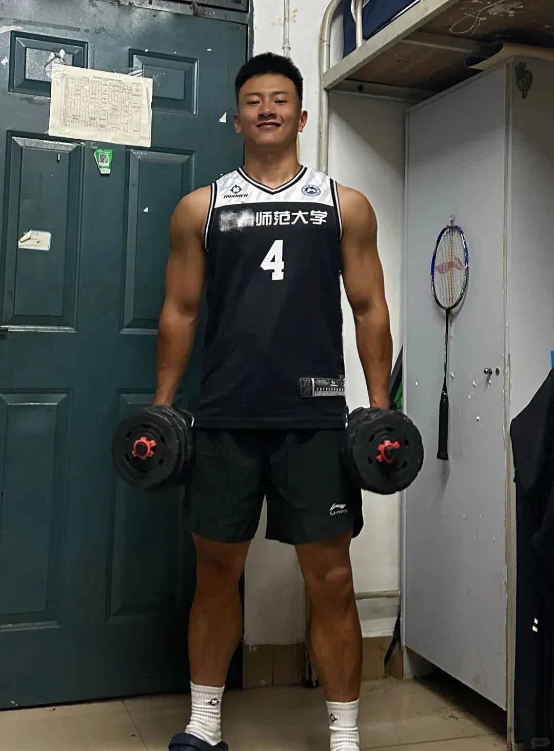 体育生宿舍常是乱糟糟且带点汗味的。小哥赤膊上身,胸肌饱满,专注玩手机,而他的双腿才是吸睛焦点。其大腿粗壮,小腿肌肉发达,彰显着平日对下肢力量训练的重视。
