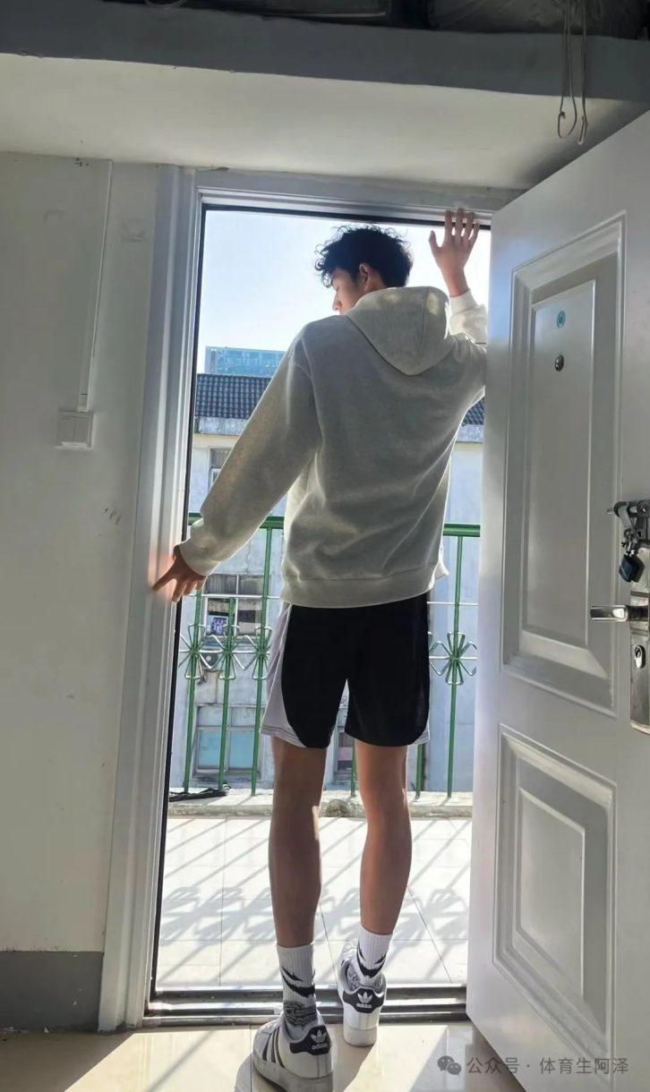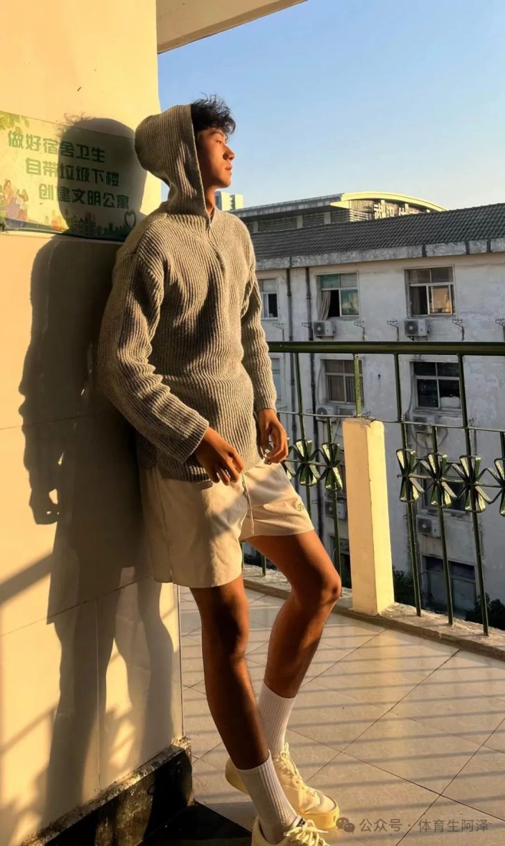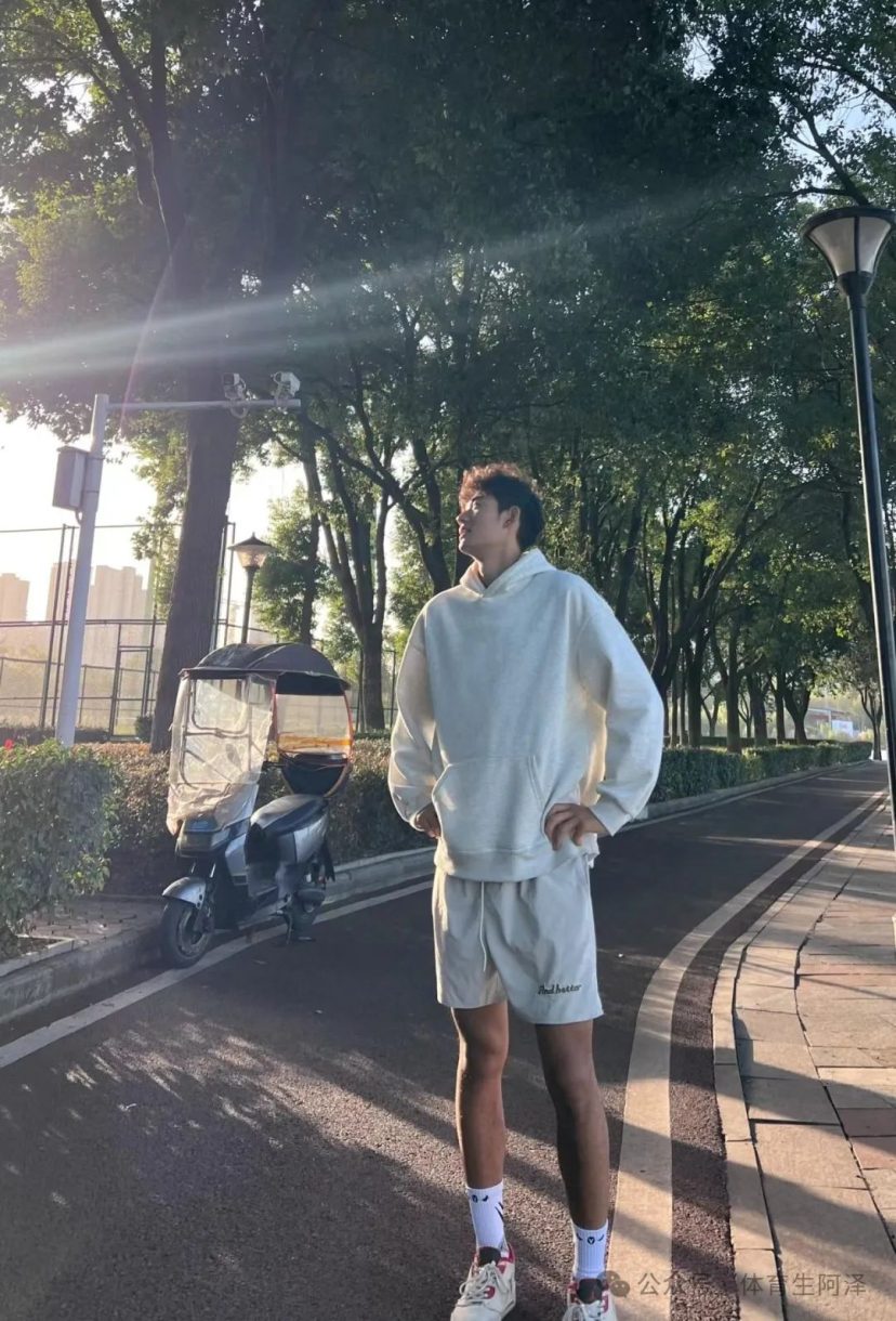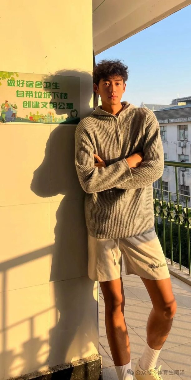 首先被这张图入坑的,因为这张图的光线是非常的好而且衣服和颜色和周围的景色是非常的搭配了。有点超绝氛围感了,所以阿泽绝定好好的点击去观察观察他的拍照姿势啊哈哈哈哈。其实是这个颜值吸引到阿泽了,因为这个颜值真的是帅啊!有种那种广西的帅哥的感觉,看起来就很舒服,并不需要多么的精致或者狼,看起来是帅到骨子里的那种感觉啊哈哈哈哈。特别的招阿泽喜欢,最重要的是tag里加的运动员和体育生哈哈哈哈。 其次就是这个长腿和白袜了,黑腿配白袜,黑白组合那是在哪里都是很吃香的。特别是腿的黑衬托出了白袜的白,更加的凸显出了白袜的魅力了。看见这个白袜阿泽就觉得香香的哈哈哈哈哈哈。然后就是这个身高了,光说这个腿长阿泽就觉得真的没p图,而且注意观察拍照的高度,这个高度能拍的腿这么长那绝对是一个好腿啊哈哈哈哈。阿泽更喜欢了。