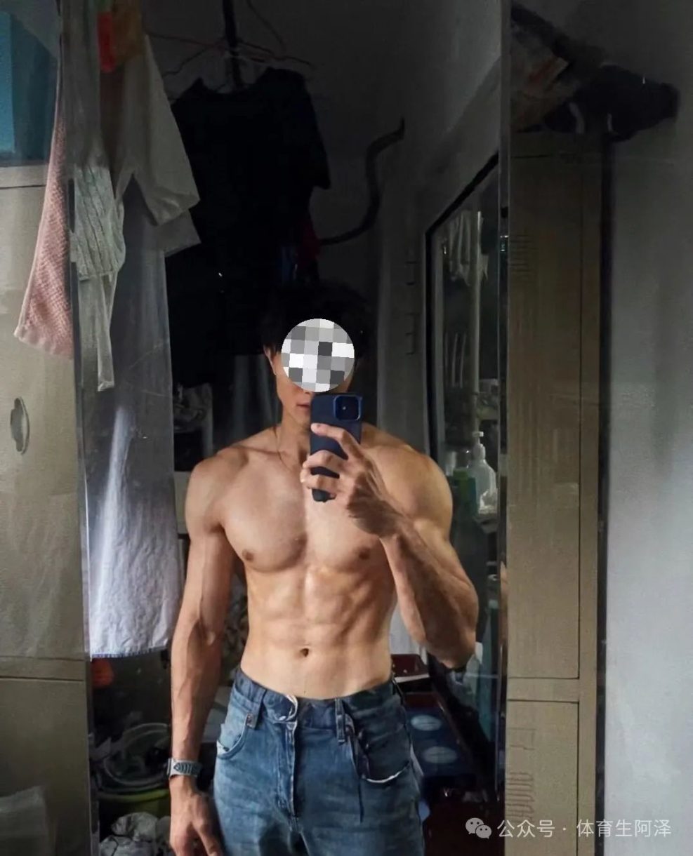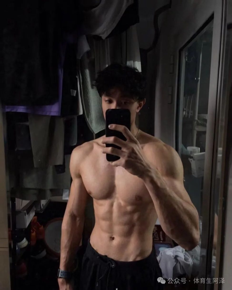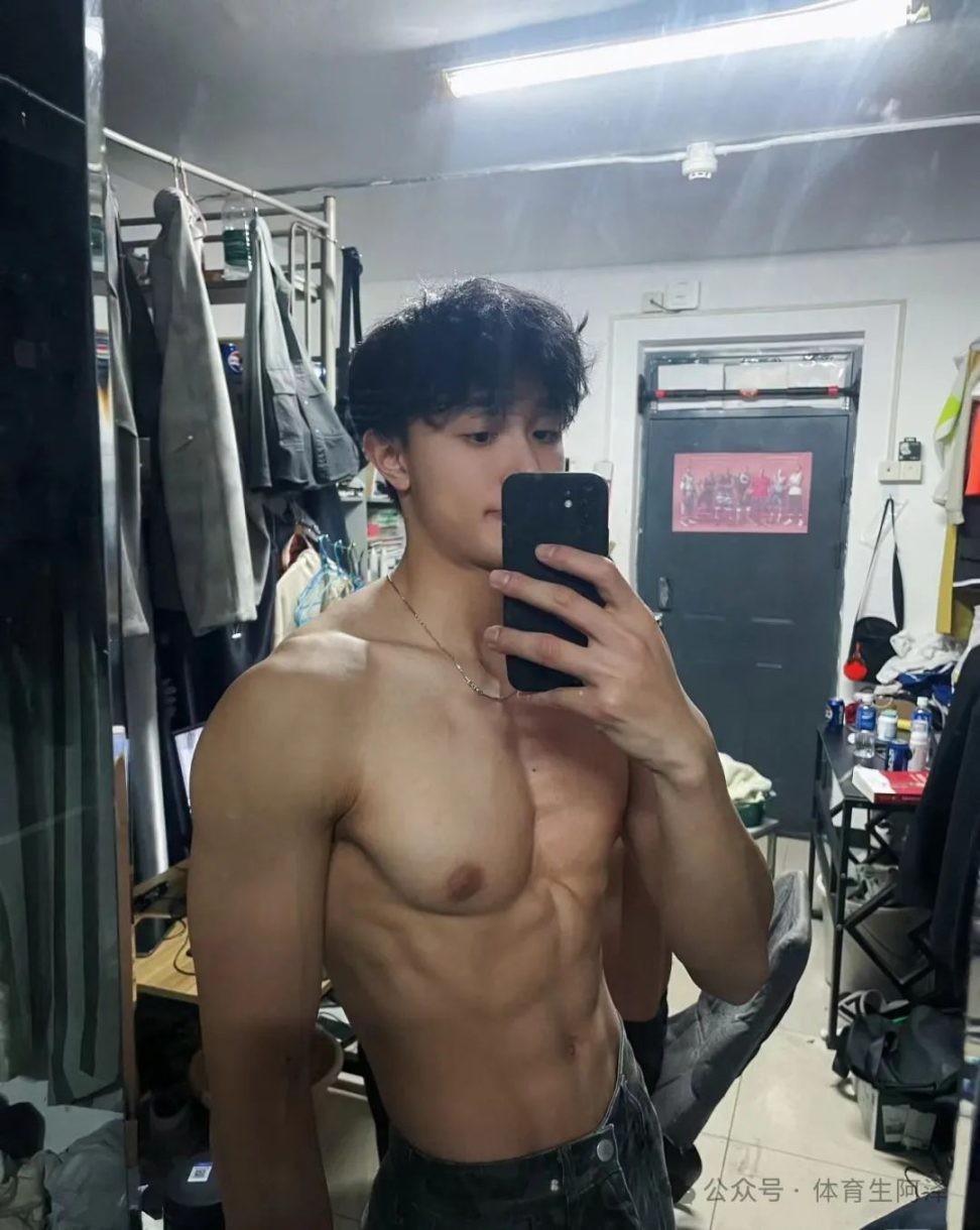 看见体育生在宿舍拍照都怀念大学时代了呜呜呜呜,因为大学时代是遇到高颜值和身材的最多的时代。想想体育部那么多的高颜值体育生在澡堂和水房赤裸上身的感觉。简直是人间天堂哈哈哈哈。这位应该平时在楼道里没少露面吧!不知道吸引了多少小男生的关注啊哈哈哈哈哈。但是该说不说这是学长应得的。就是不知道学长喜欢的是小妹妹还是小弟弟。大家可以猜一下哈哈哈哈。