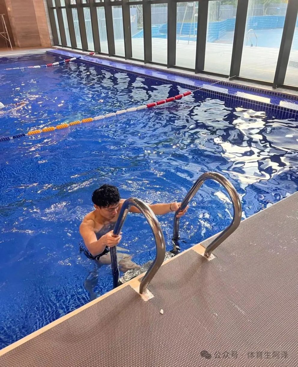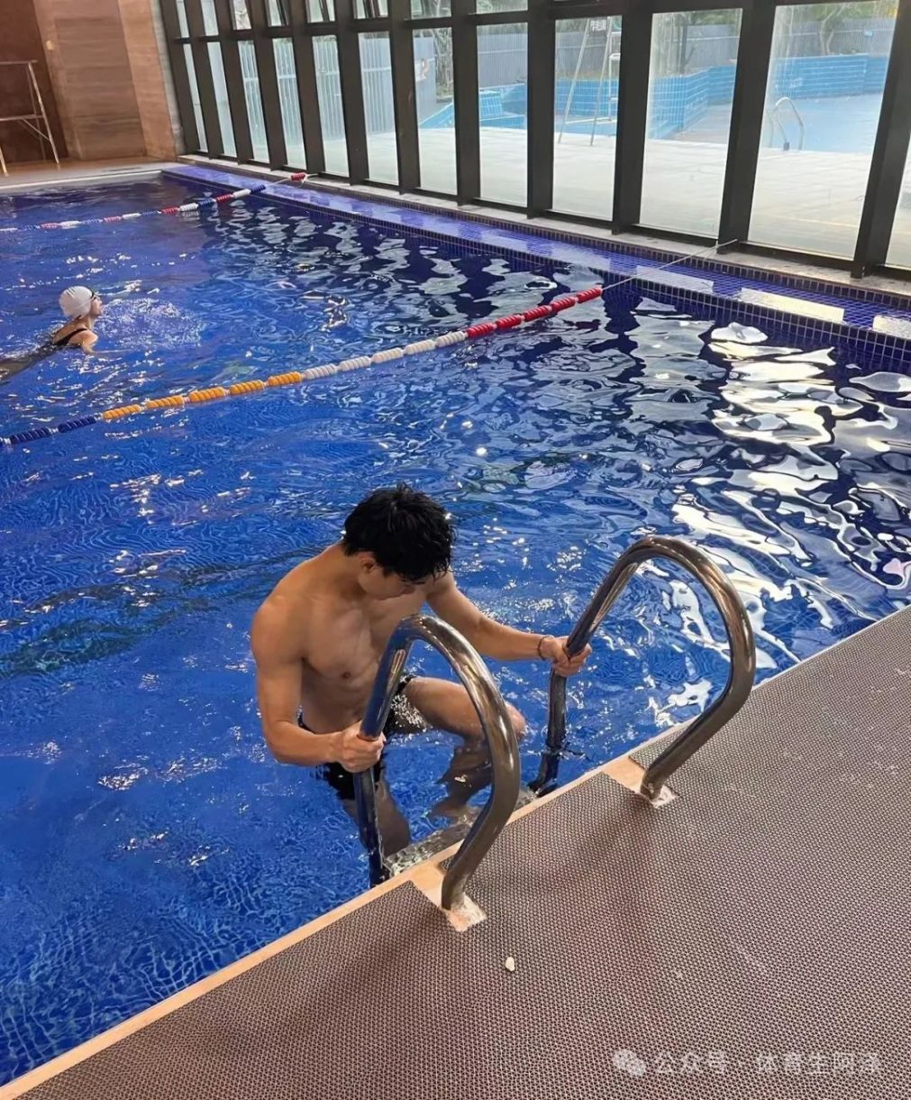 还有这个学长游泳的图,这个角度阿泽算是爱惨了,不仅将手臂上的肌肉完美的呈现了出来。而且在池水的映射之下,肌肉更加显得诱惑了,而且水珠落在肌肉上和腹肌上,有没有感觉又流口水了哈哈哈哈。还有这个水面恰到好处,正好淹没大腿,若隐若现的大腿肌肉把阿泽谗哭了哈哈哈。地址在哪阿泽也要一起游。