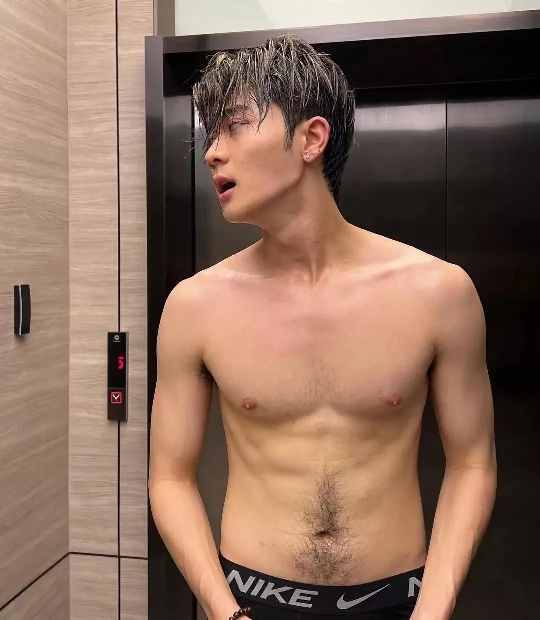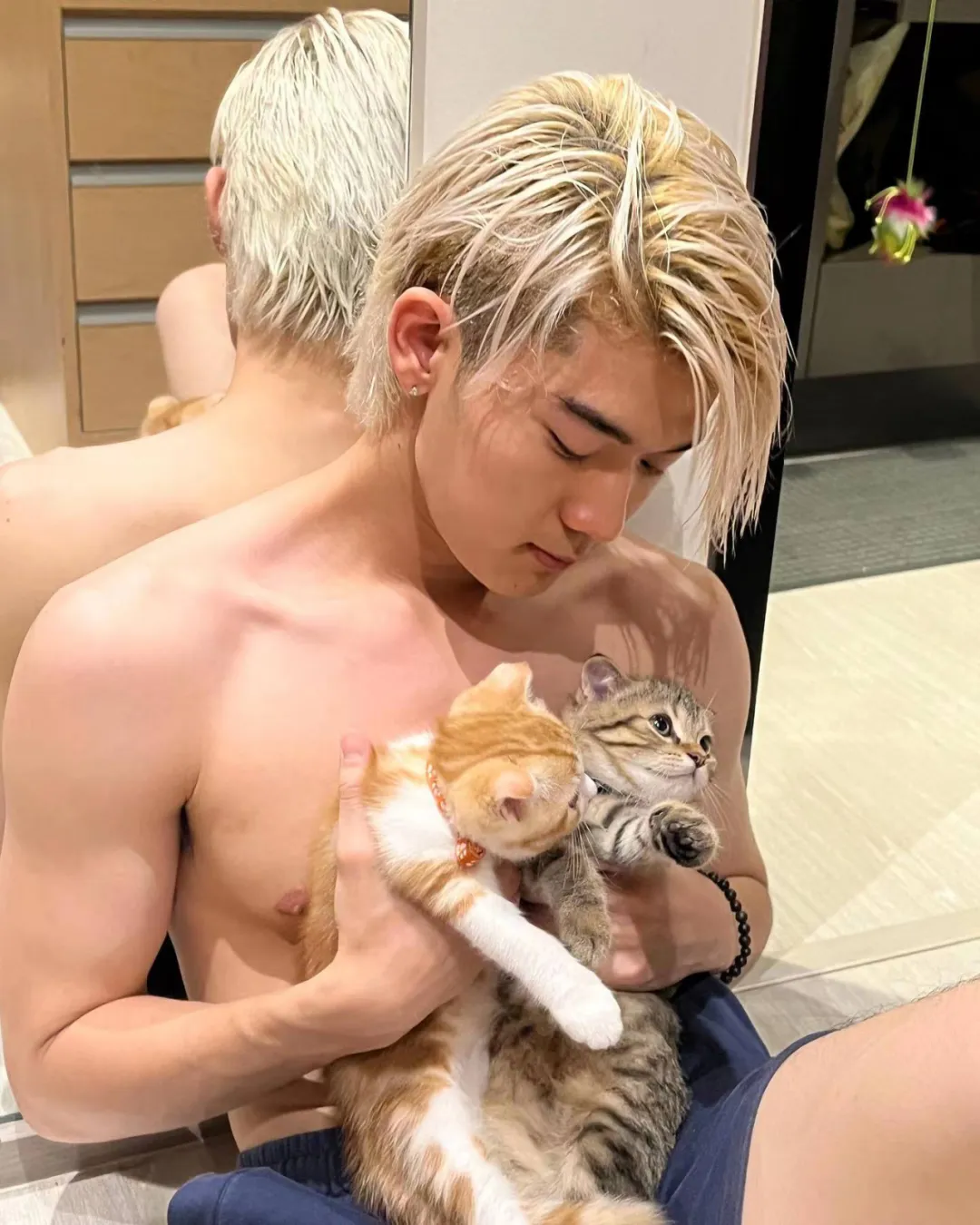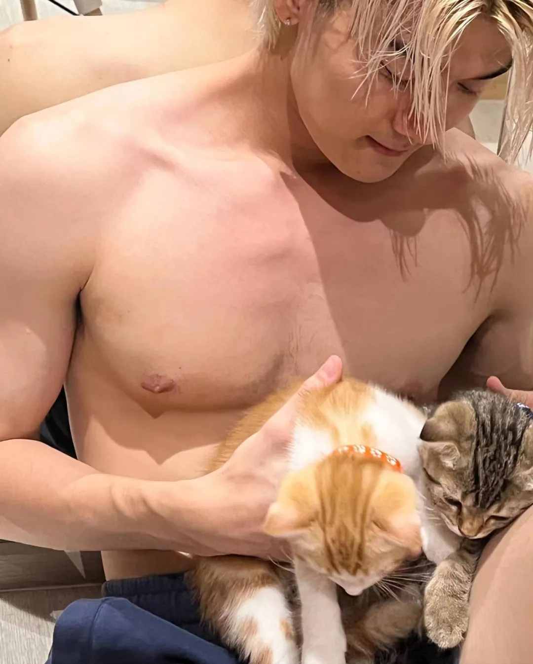 而他腹肌上清晰可见蔓延的腹毛,又让他多了几分野性的帅气~