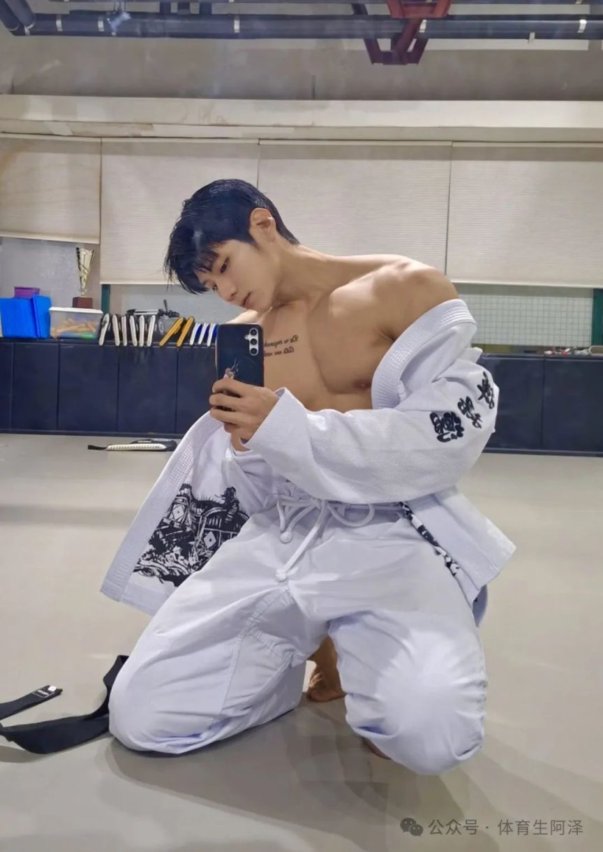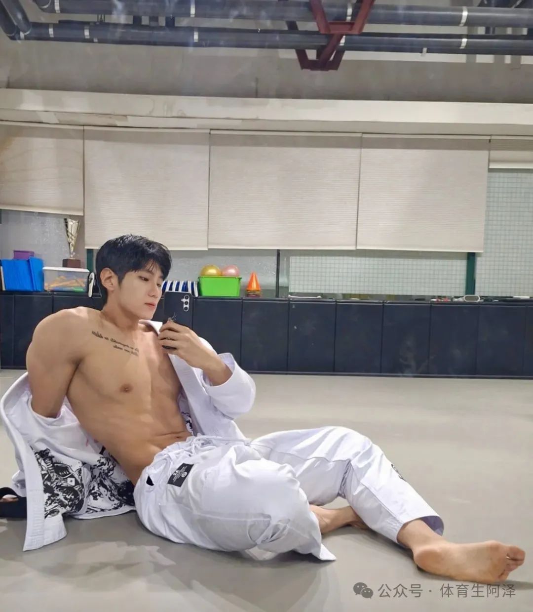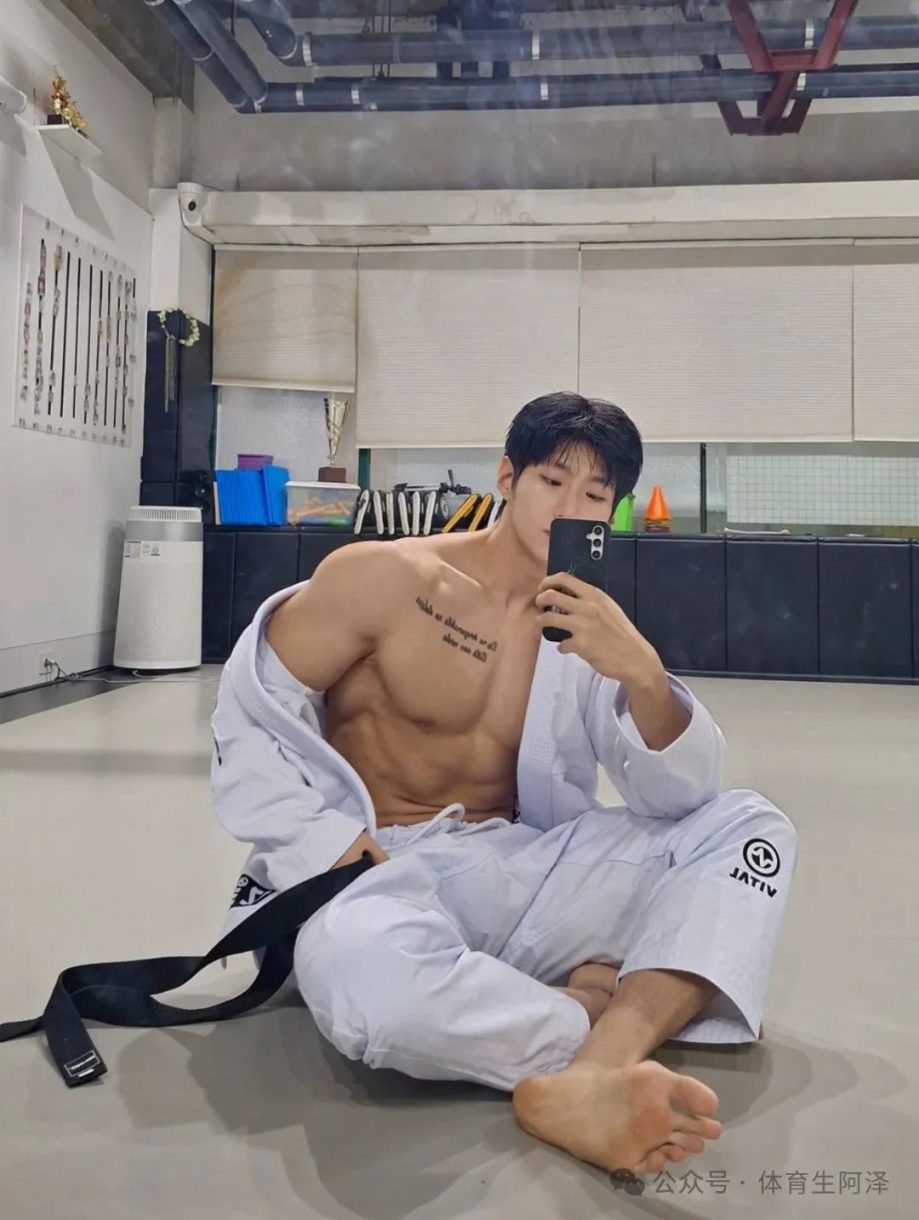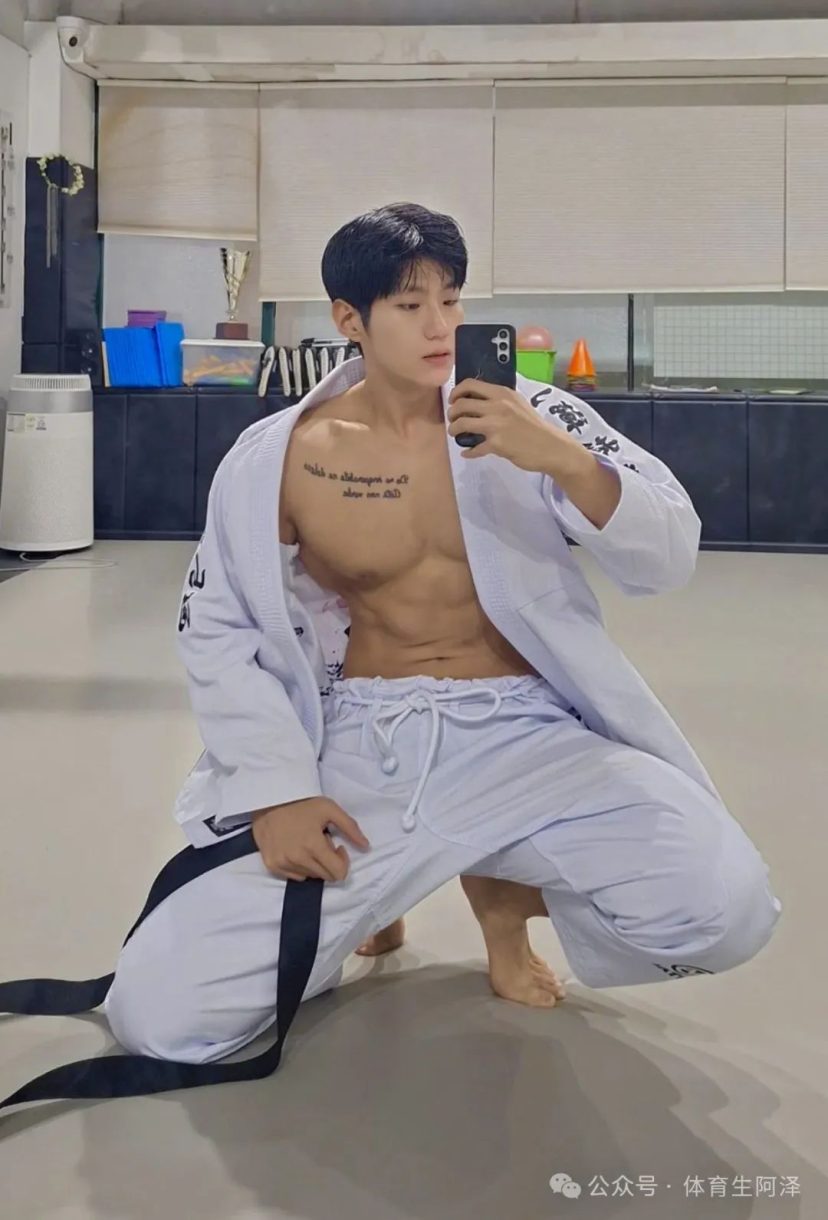 而且跆拳道帅哥怎么能少的了服装诱惑呢?这个白色的衣服加上黑色的丝带。这是在干嘛,上演纯欲诱惑嘛哈哈哈哈哈哈。而且还有这个身材哇塞。宽肩窄腰,倒三角的胸肌,饱满均匀的腹肌真的好想让人采摘一下果实哈哈哈哈。而且这个脚阿泽也是非常的喜欢啊哈哈哈哈哈,虽然说出来大家还以为阿泽有别的癖好呢,但是这个脚阿泽是真的可以啊!大家应该也和阿泽一样吧啊哈哈哈哈哈。