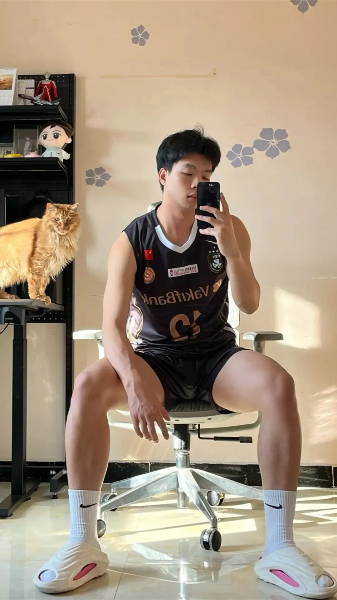 运动赋予的魅力作为一名排球体育生,他的身材显然经过长期的专业训练。排球运动对弹跳、力量和平衡性要求极高,这不仅让他的腿部线条流畅有力,更散发出一种自然的运动美感。无论是奔跑、起跳还是扣球,他的动作都充满了力量与灵活的结合,让人移不开眼。