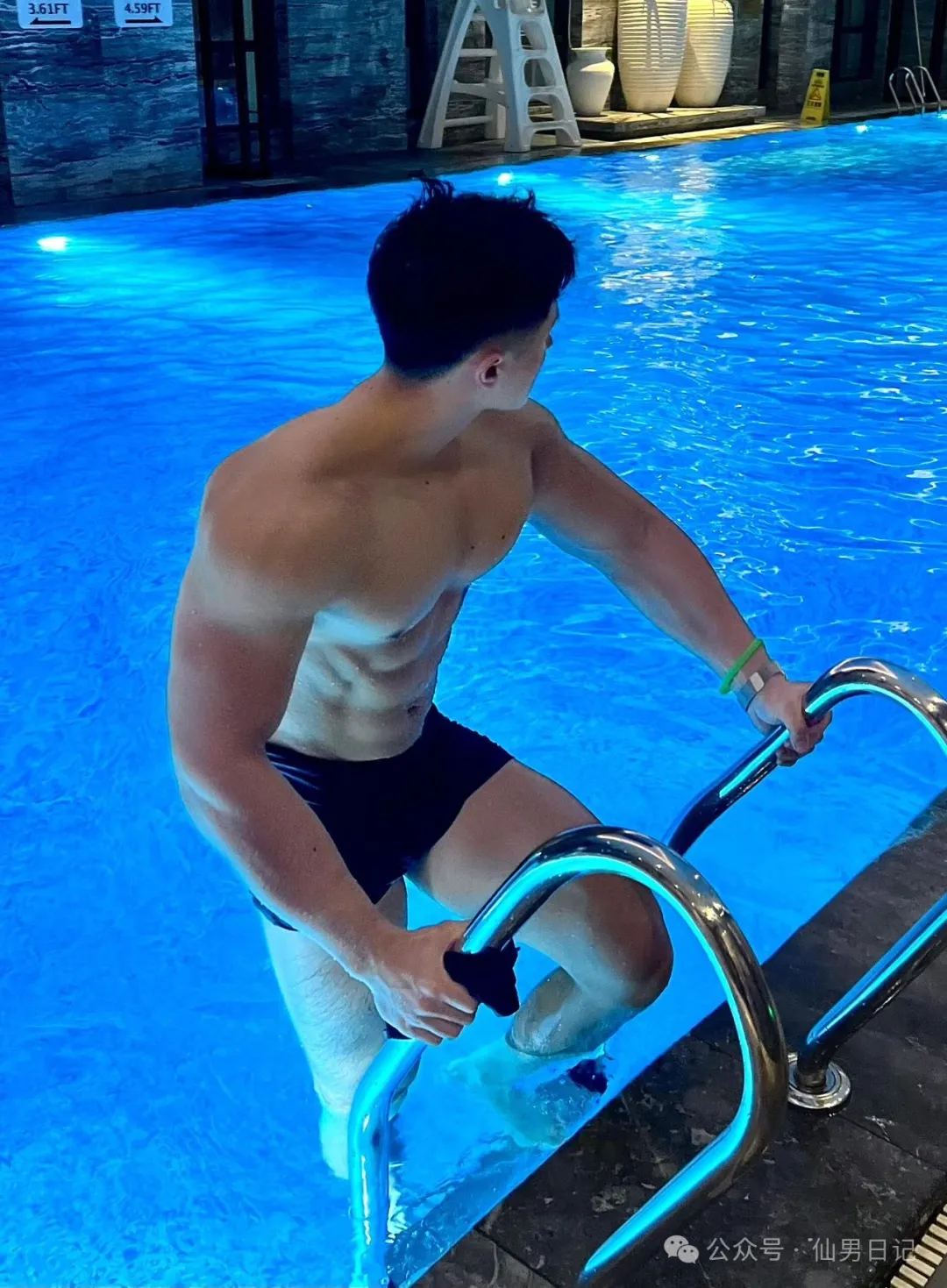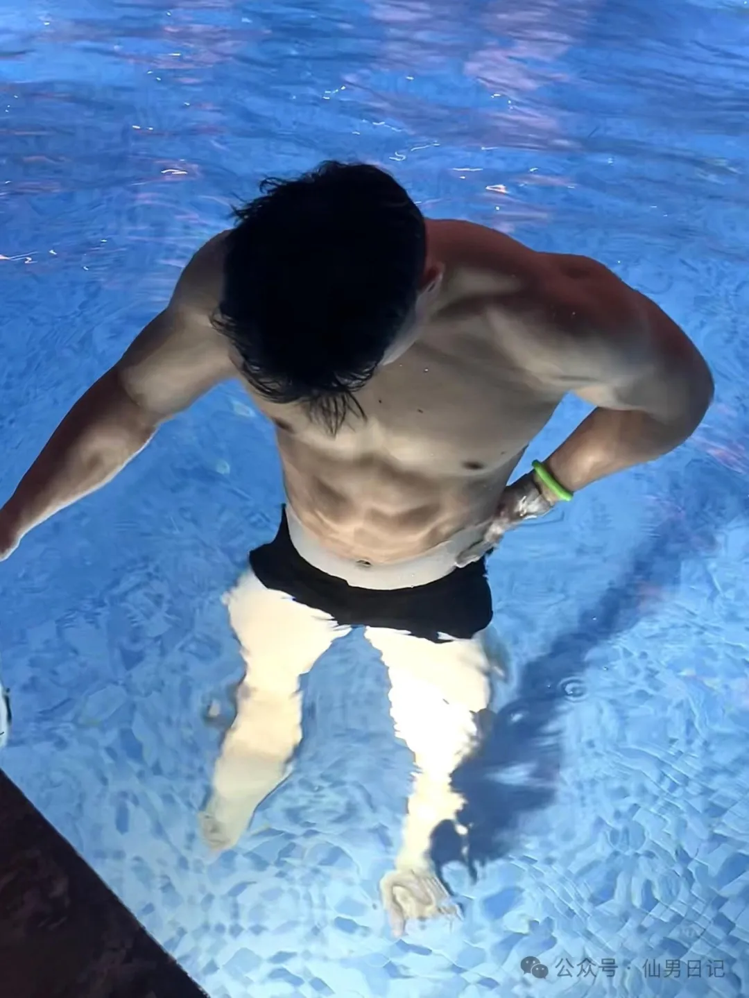 小哥哥真可谓是十八般武艺样样精通,健身游泳都不在话下。从泳池里走出来的瞬间,身材线条流畅而健美,身材比例协调,肌肉线条紧实而不夸张,泳裤紧贴肌肤,勾勒出他修长的双腿和结实的臀部,显得非常性感。真的看呆了!