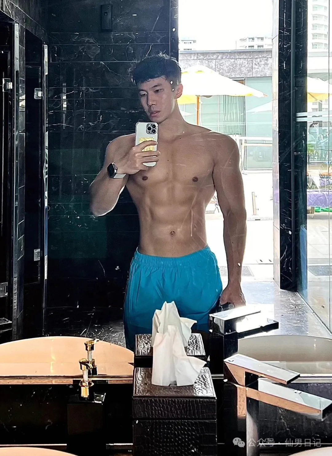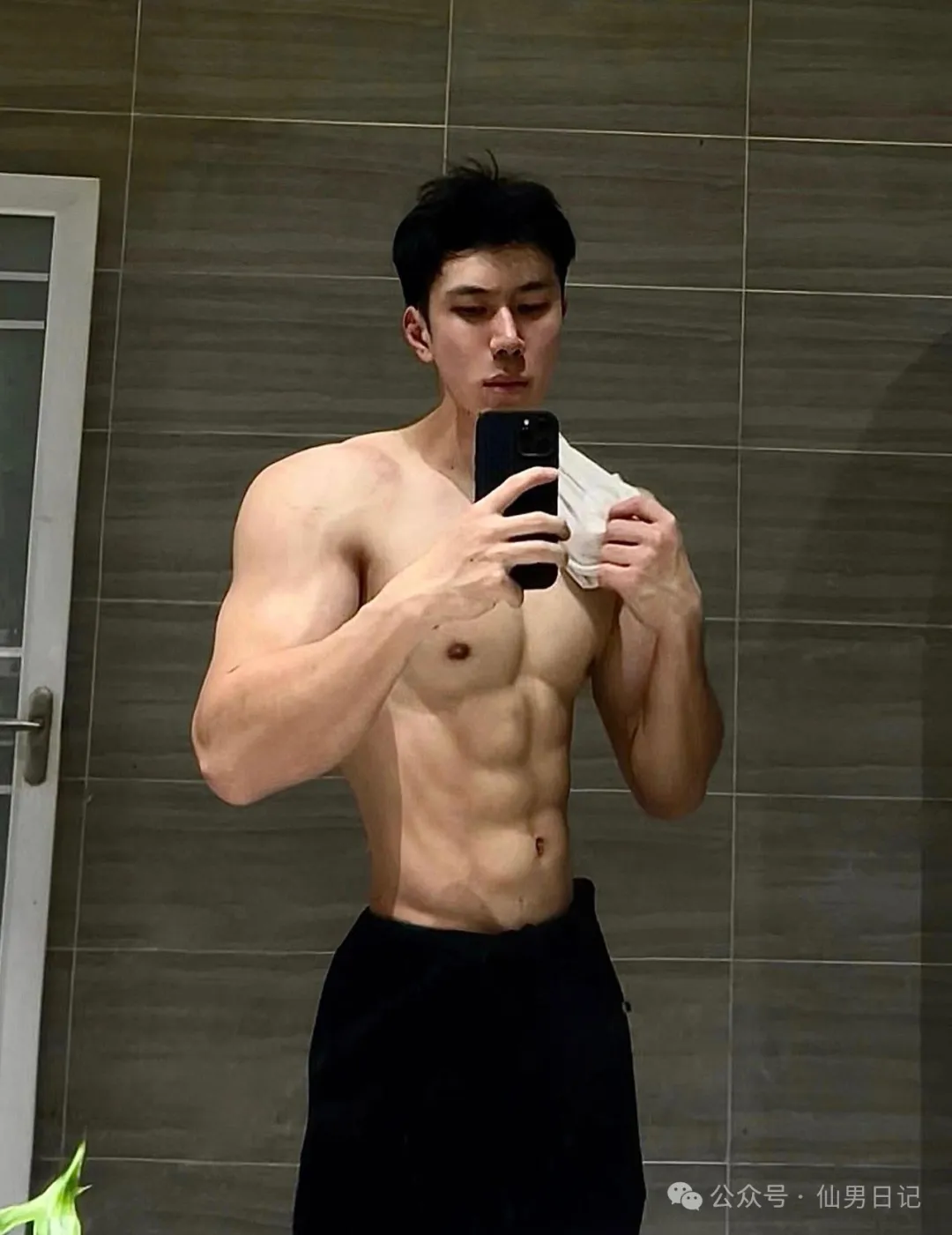 小哥哥最近这张健身后的自拍也非常出圈。六块白皙的腹肌更是让人尖叫!