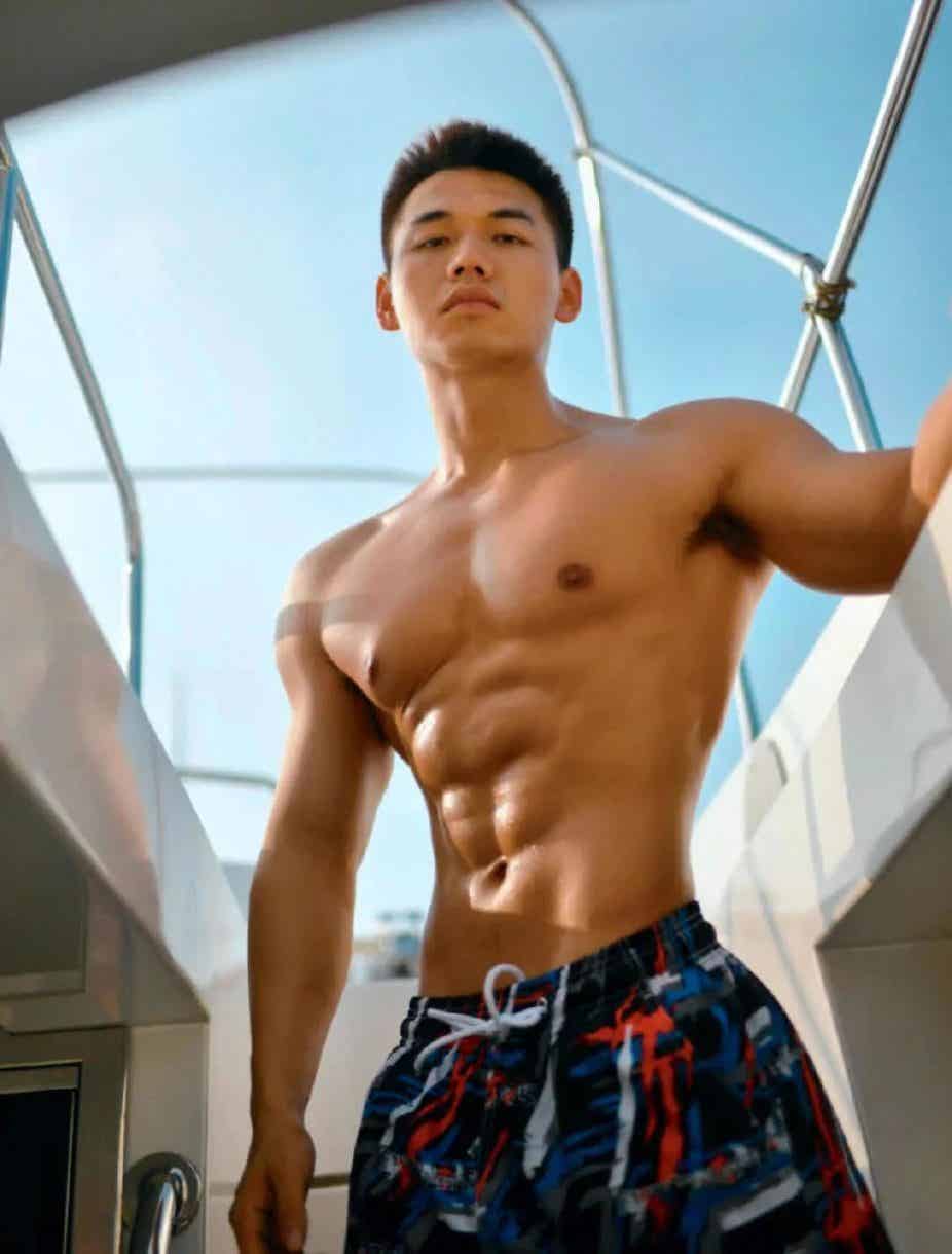 小章章不仅喜欢健身,还超爱游泳!那身材,游泳一定是他塑造身形的重要途径之一。每次他去海边,身穿泳裤的样子,简直就是夏日海滩上最亮眼的风景。你能想象一下,在沙滩上看到他阳光灿烂地微笑,露出他那健美的腹肌和精致的胸肌,那种自信感、力量感,你会不会也觉得有点小迷人呢?在这里我要问下大家了,你喜欢游泳吗?这位小哥哥喜欢健身,喜欢游泳,喜欢运动,怪不得身材这样好。太羡慕了!