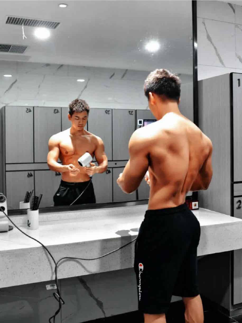 看着他在健身时候的照片你就知道他平时有多努力了,这臂膀力量感太强啦!再看看他在更衣室的背影照片你就能够发现,这身材线条太招人爱了,这背影的轮廓太喜欢了,在这里我要问下你了,要是你身边遇见这样的运动小哥哥你要和他做朋友吗?反正我是只要他愿意,我一定和他当朋友的,有时间就一起锻炼,周末的时候一起聚聚餐!
