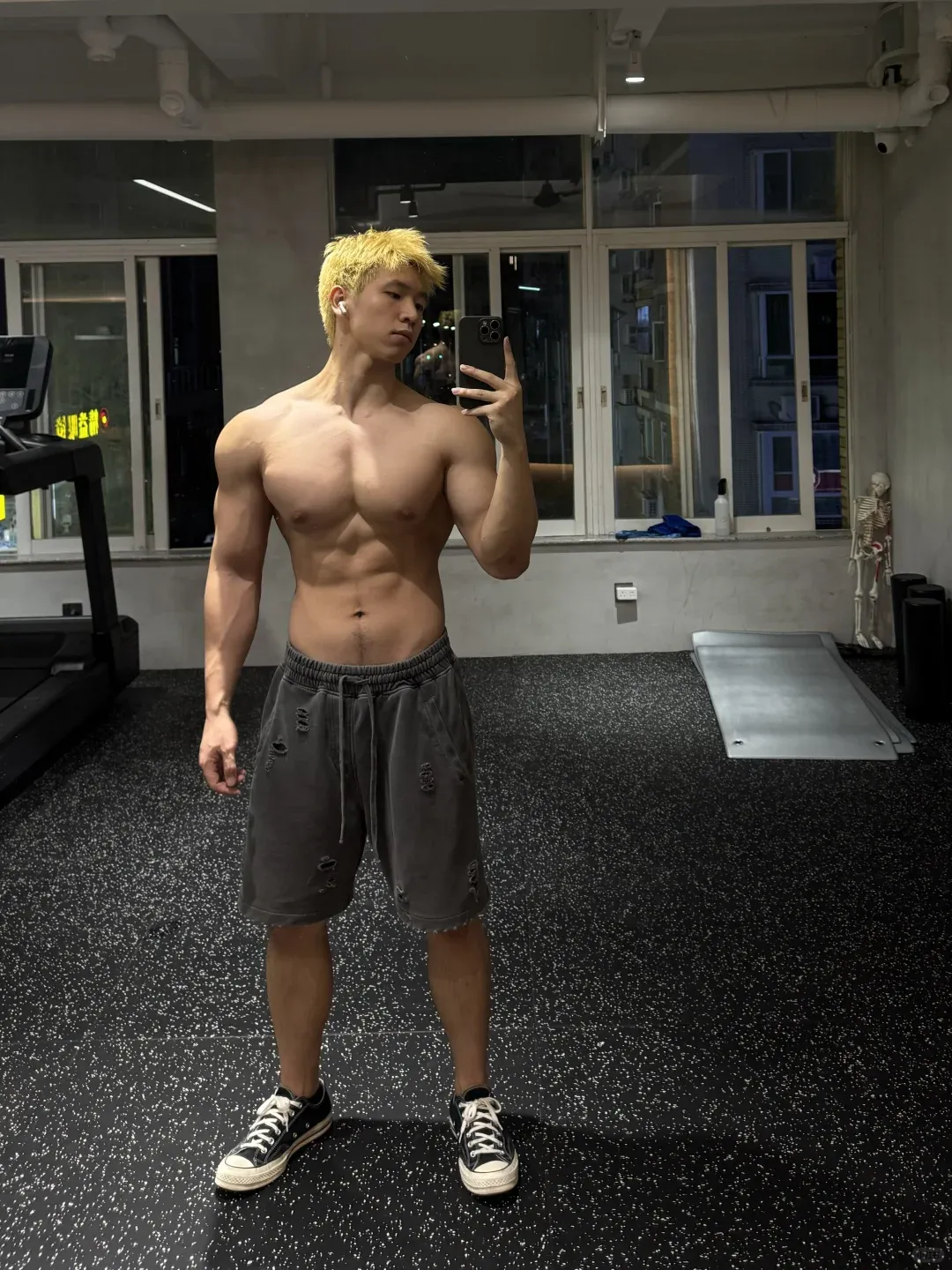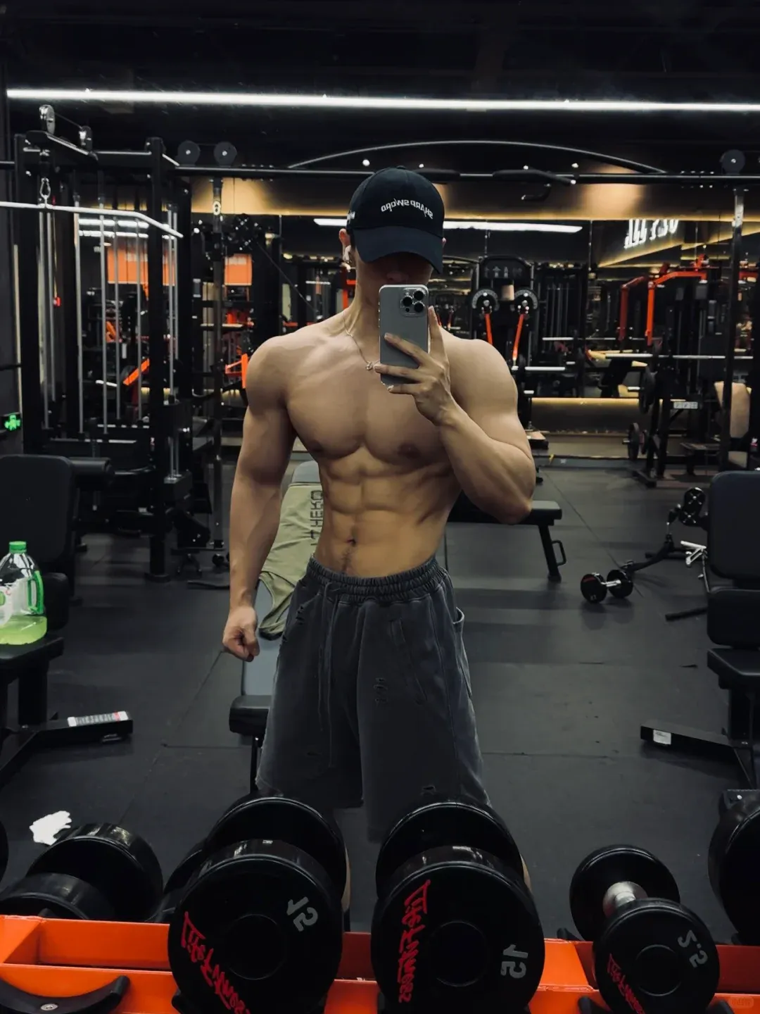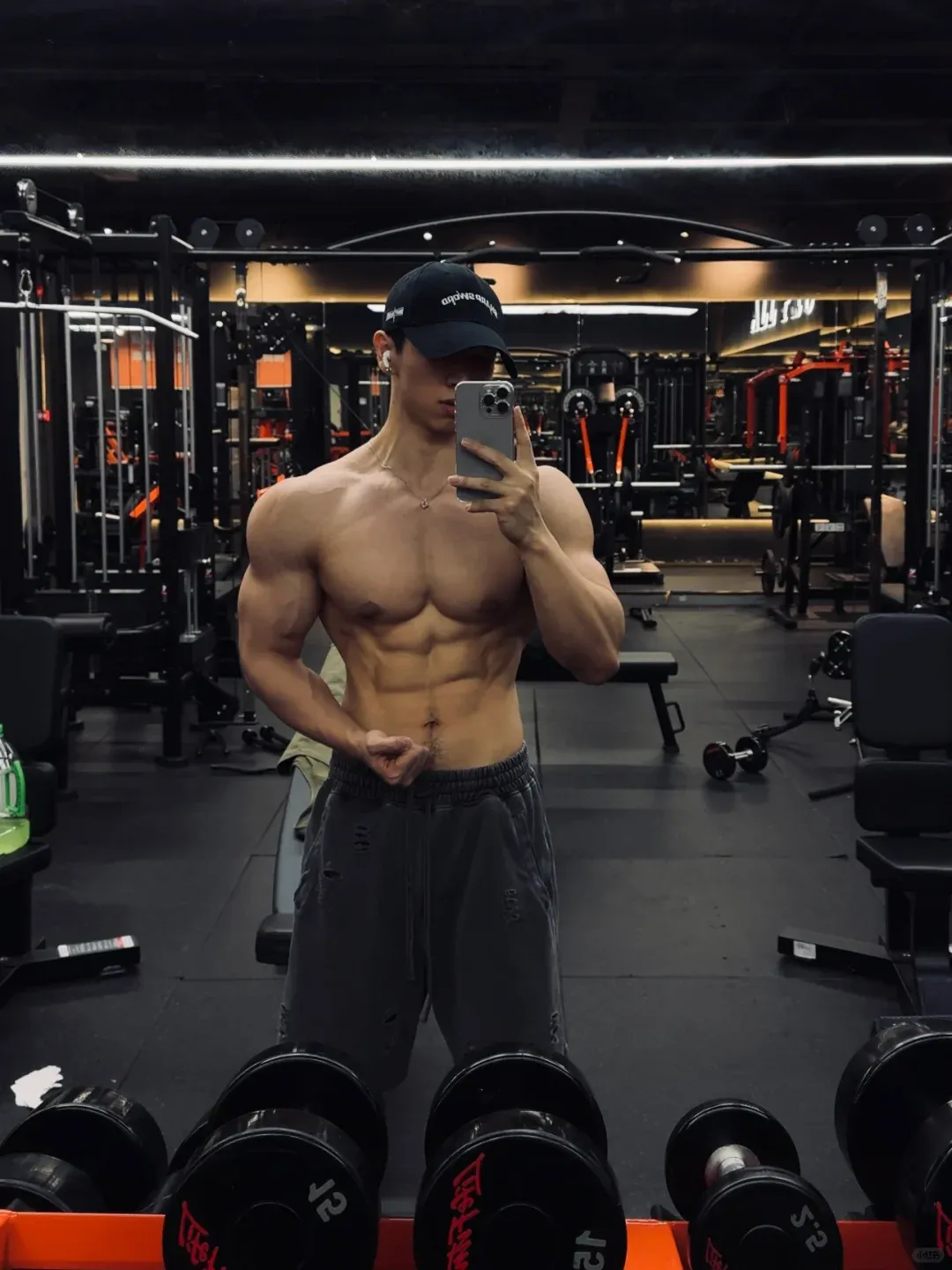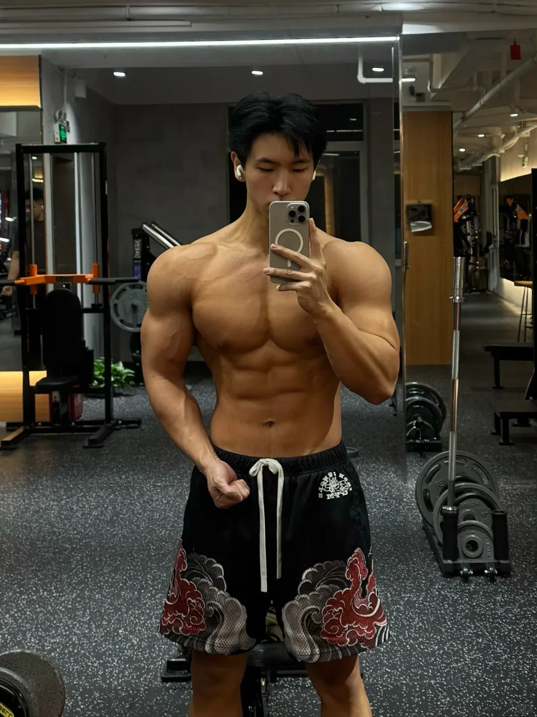 小哥哥的身高不算高,只有 173 公分。他的体重保持在 75 公斤左右。这个身高对比这个肌肉量是很厉害了。