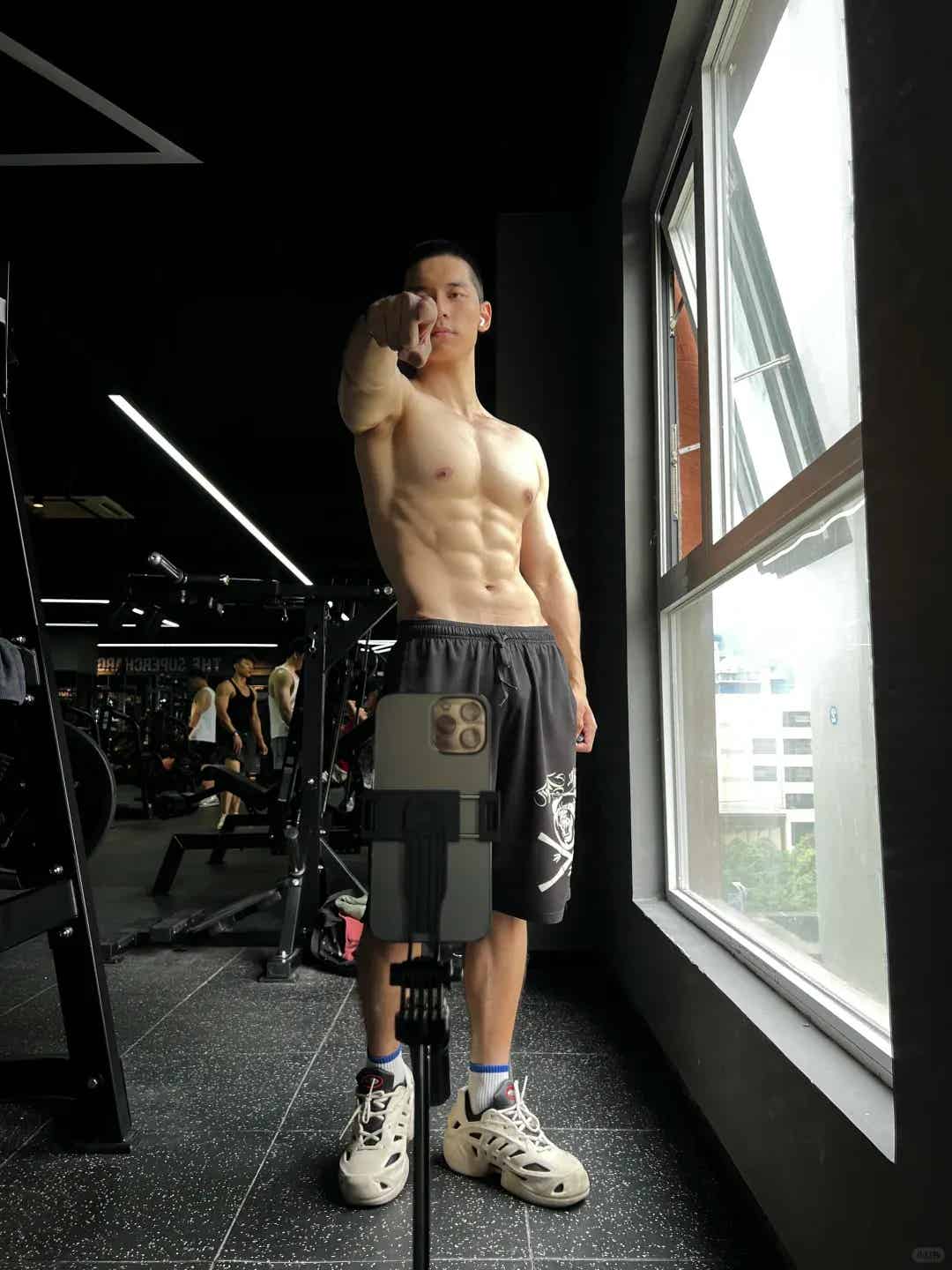 看小哥哥自己的介绍,他健身也有十来年的历史了。他现在的身材八块腹肌腱划相当明显而且很深,看得出练了很久,维度也不错。