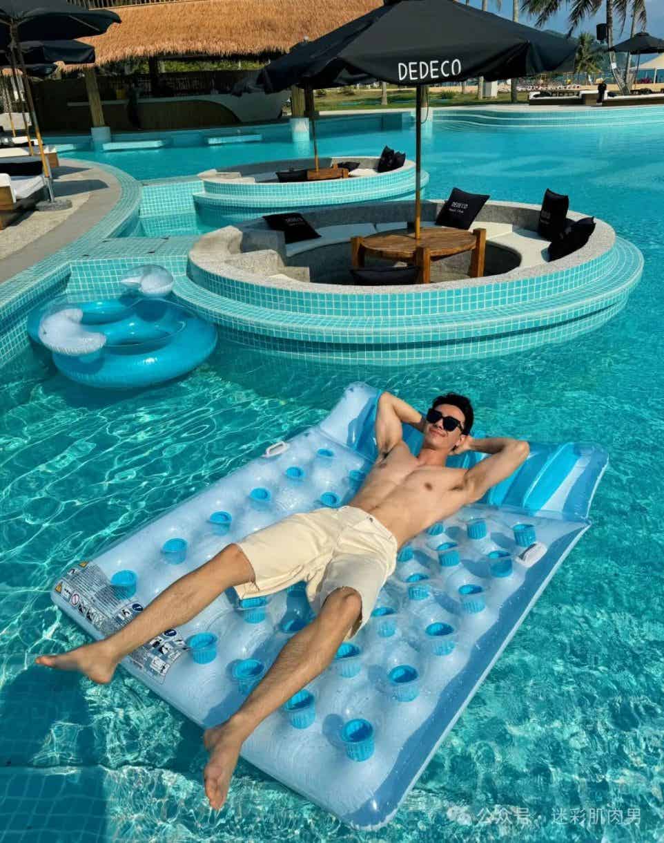 看着他玩水的样子真的是太性感太帅了,小武我就在小武泳池都算是比较奢侈的了,毕竟我实力不允许呀,估计有很多粉丝都和我一样喜欢看那些玩水湿身的型男了,不得不说他身材炼的是太好了,穿什么都挡不住这性感的肌肉身材!