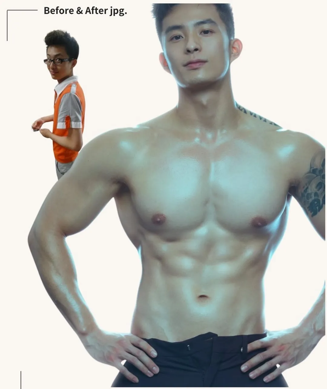 他的写真也超吸睛,尤其是那部被称为阳光Boy典范的《晏人物》,简直就是魅力炸裂。健壮的肌肉线条搭配温暖阳光的笑容,那种视觉冲击力能直接让人屏住呼吸。他坐在沙滩上的写真更是不得了,海风轻拂,阳光洒在古铜色的肌肤上,荷尔蒙简直溢出了屏幕。