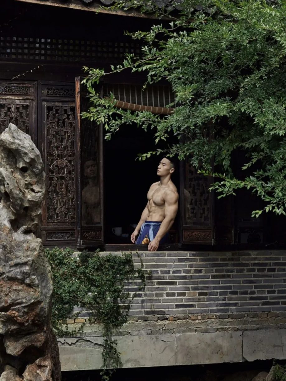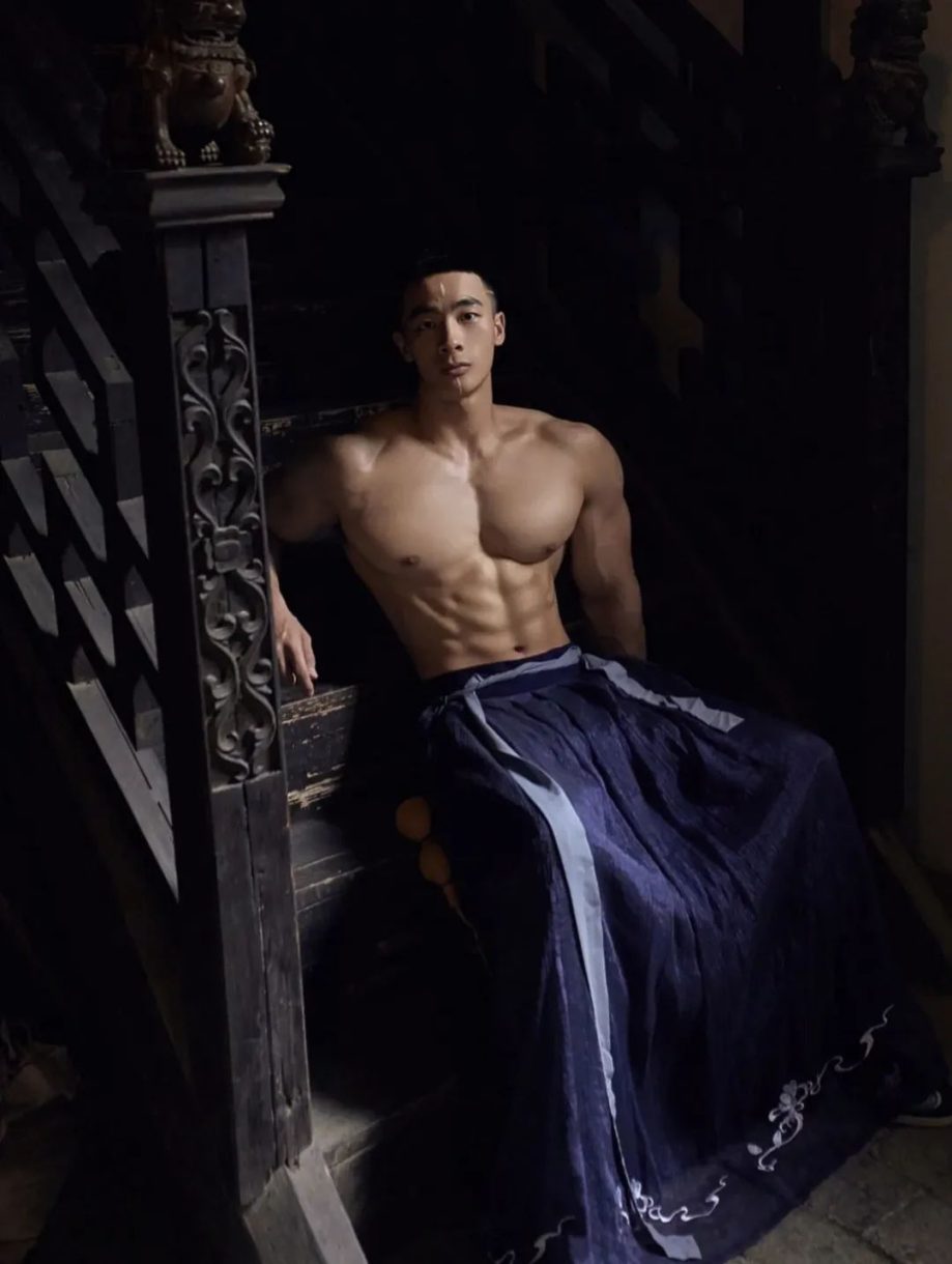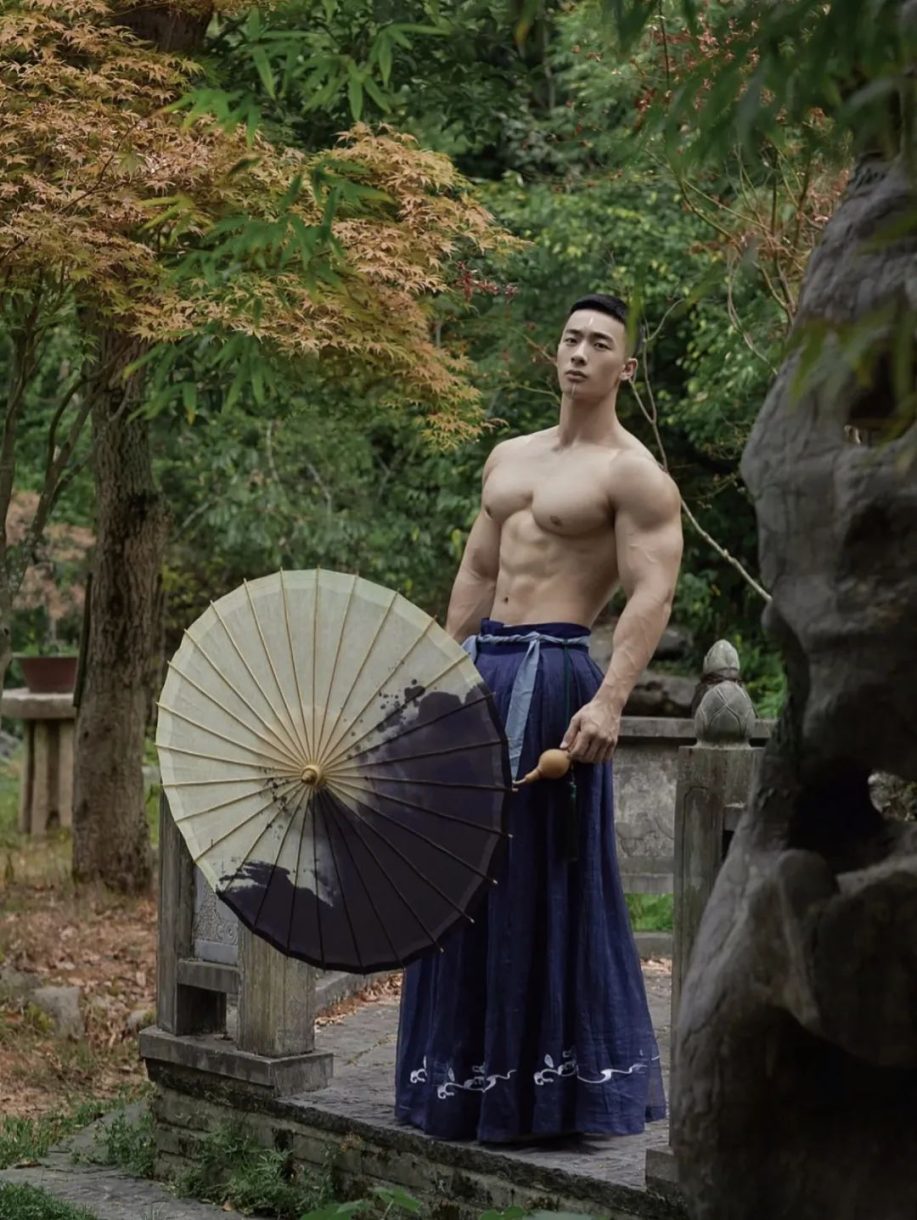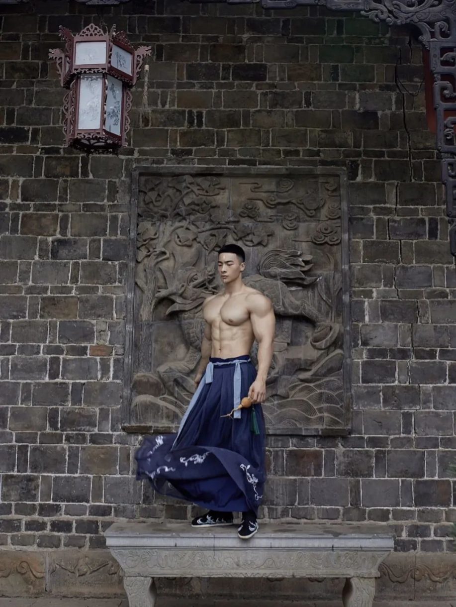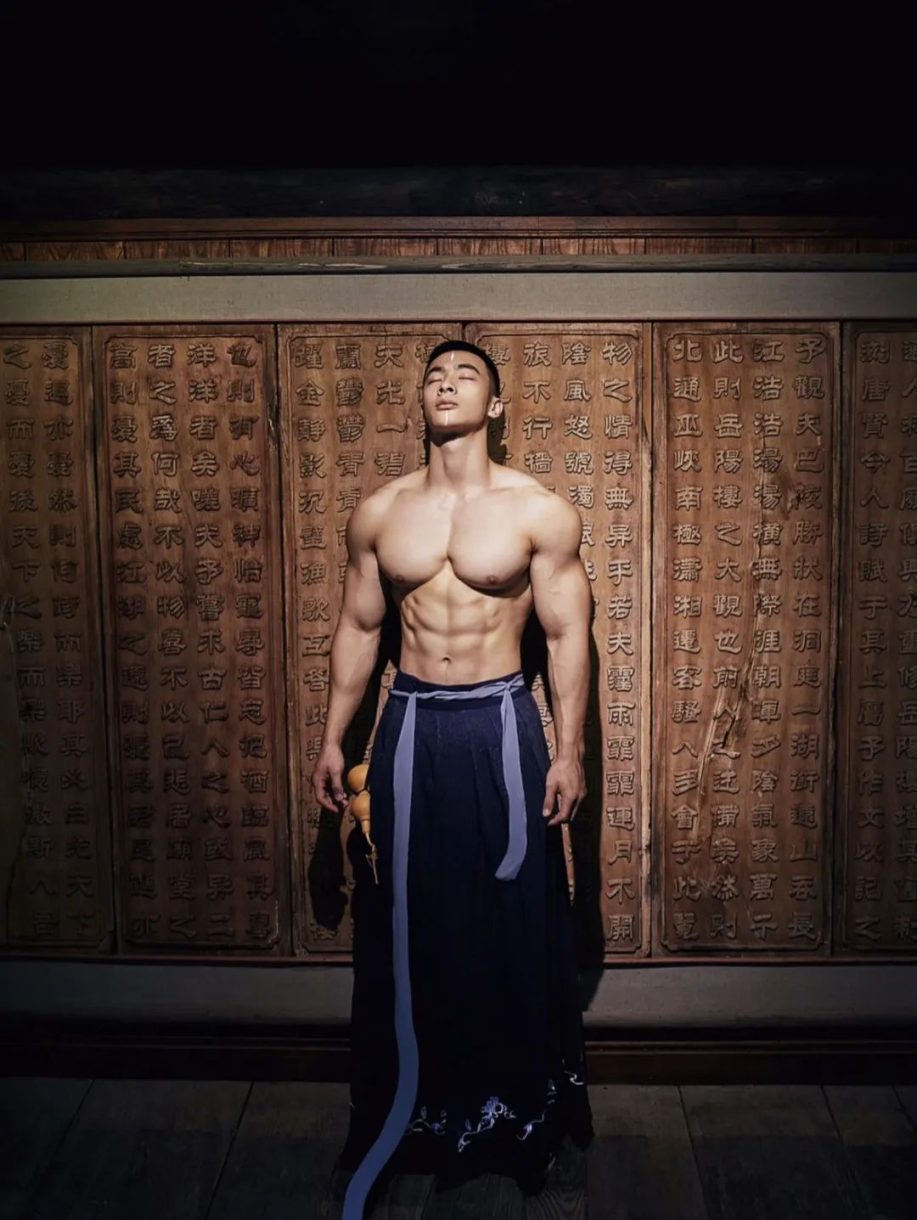 彭果健身冠军披古风衣凸显诱人肌肉线条,撩人力度Max