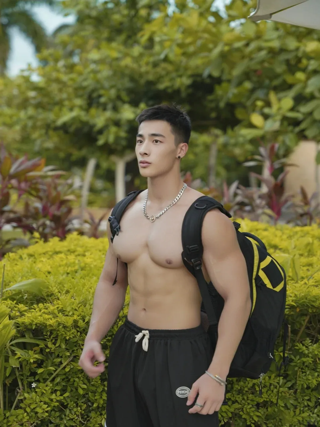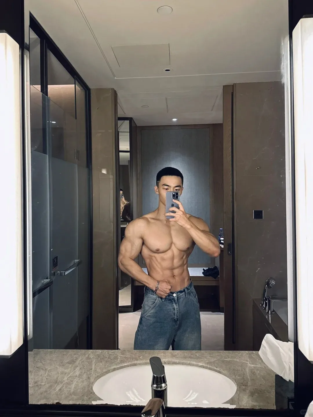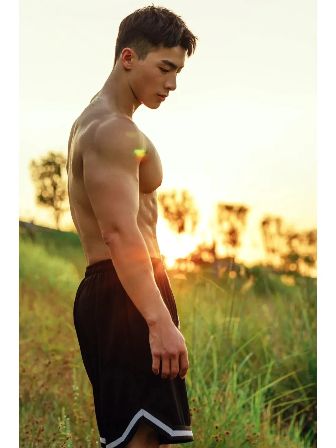 但你可别光顾着欣赏就行了,这副强而有力的身材并非虚有其表,而是小哥儿多年在健身房里的苦心孤诣所得。若非平日里对身材的打造如此用心,怎能保持这般圆润紧实却毫不夸张,一览无余却赏心悦目的好身材呢?就连手臂上分明可见的肱二头肌和肱三头肌,以及背部的肩胛骨周围的肌理,都透露出他对自身要求的极为严格。