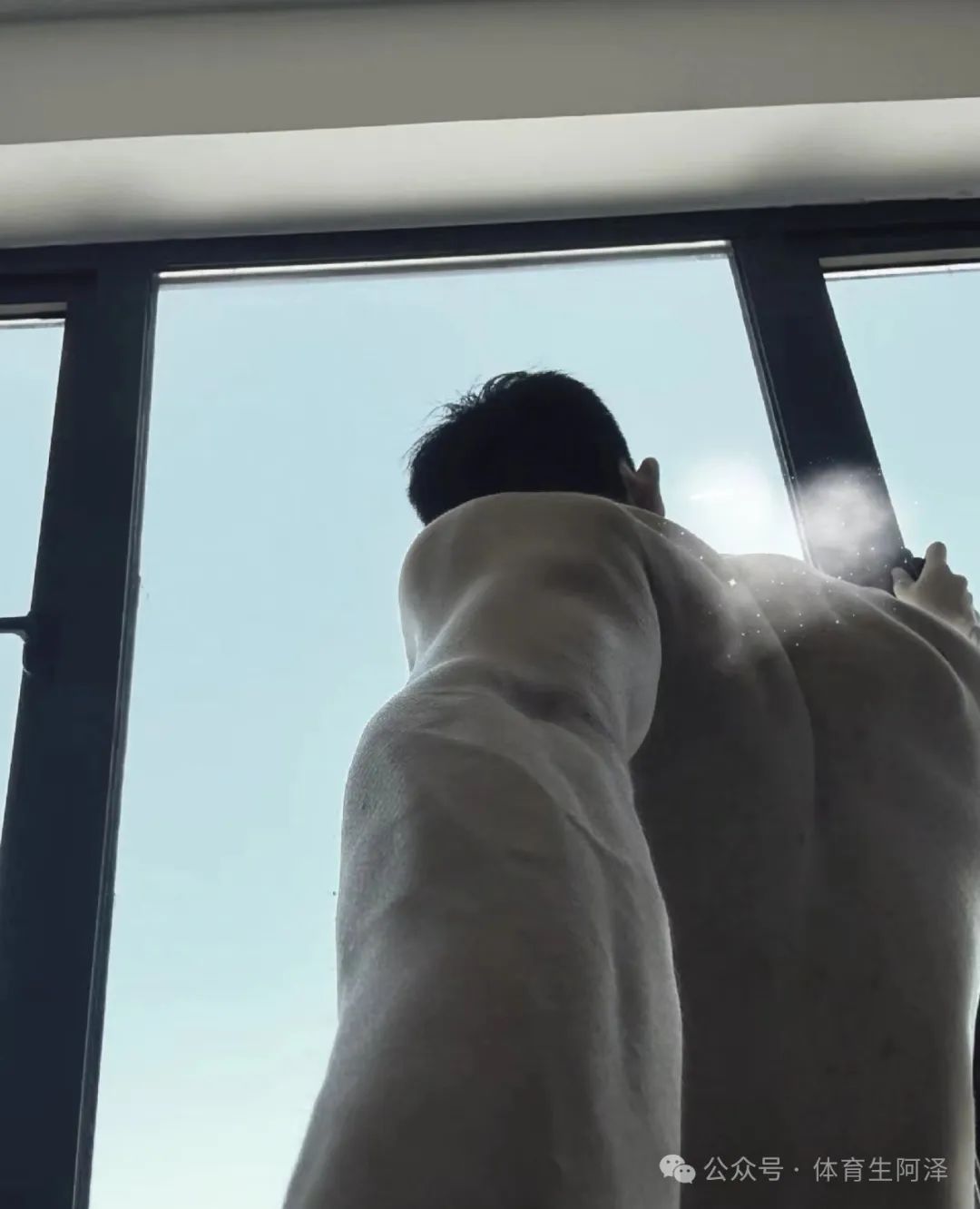 还有这个男友视角的拍照姿势。太帅了,这个荷尔蒙直接都冲出整个屏幕了,这才是真的体育生男友啊!光看这个背影就安全感爆棚。还有就是能力很强的样子啊哈哈哈哈。背部肌肉好好看。这一幕有点像清晨起床,在酒店的时候,男友去拉酒店的窗帘,你不想起来然后去拉着男友的手不然他拉窗帘的场景啊哈哈哈哈哈。真的是这样大家感觉有没有get到阿泽的描述呢?