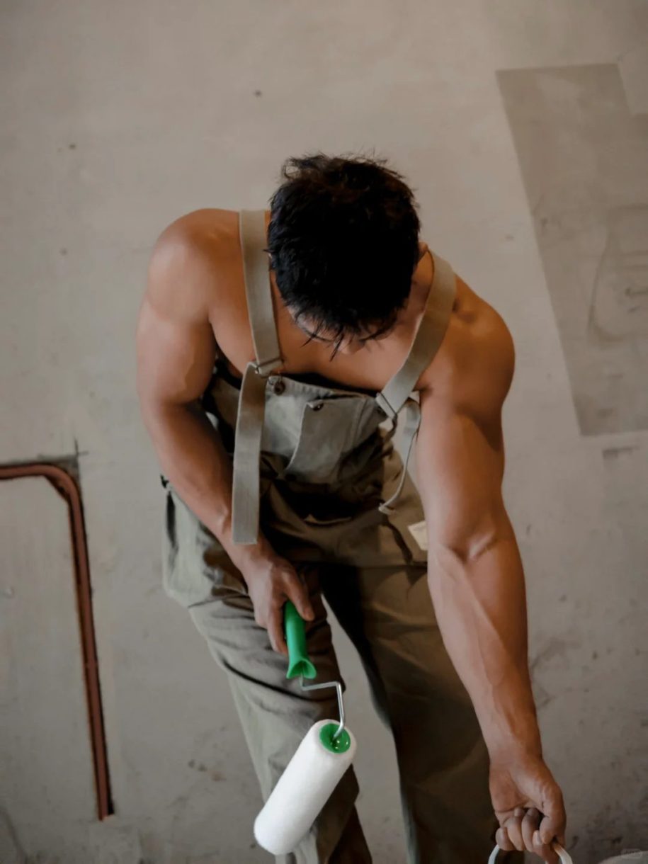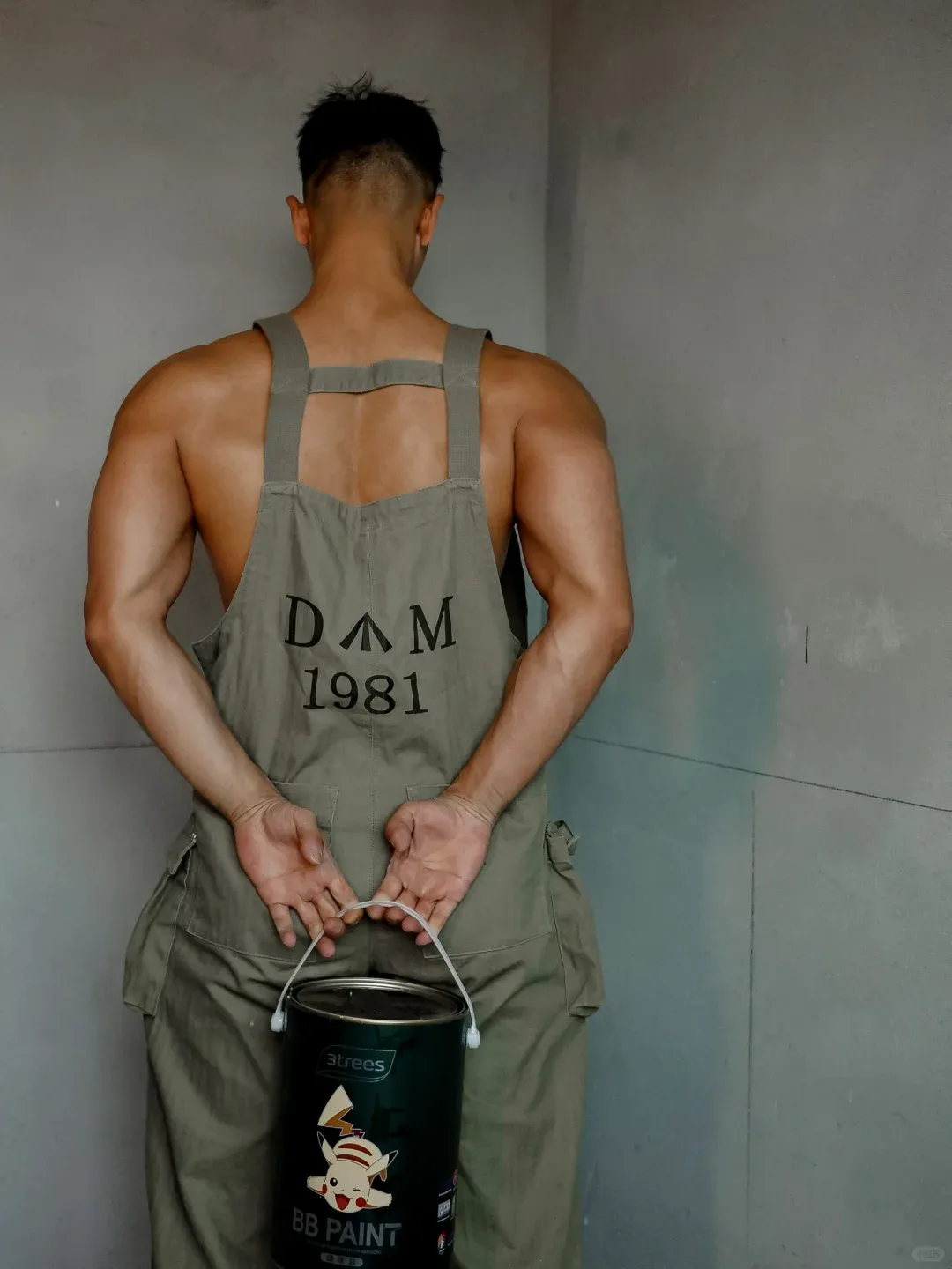 瞧那工装背带裤包裹下的结实肌肉,我们的seven哥哥化身成了最帅气的刷墙工,简直就是行走的荷尔蒙。他就是小红书的宝藏博主@Seven-HuHu ,真的是一次次地刷新我们对魅力的认知。