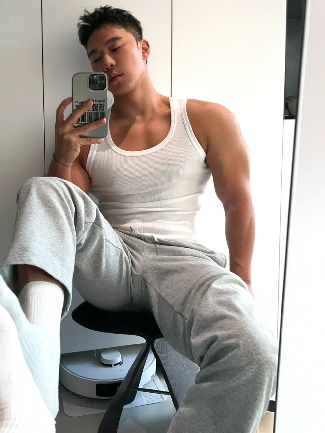 还有那经典的灰裤子配白袜穿搭,这难道不是通讯录们心中的 “天菜” 标配吗?穿在 seven 哥哥这样的肌肉男身上,更是将男性的阳刚之气展现得淋漓尽致,瞬间 man 力值爆表。