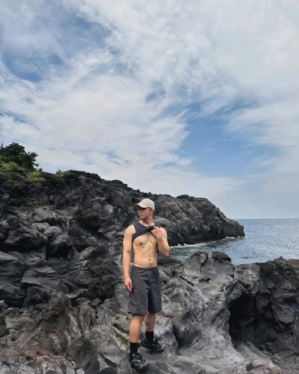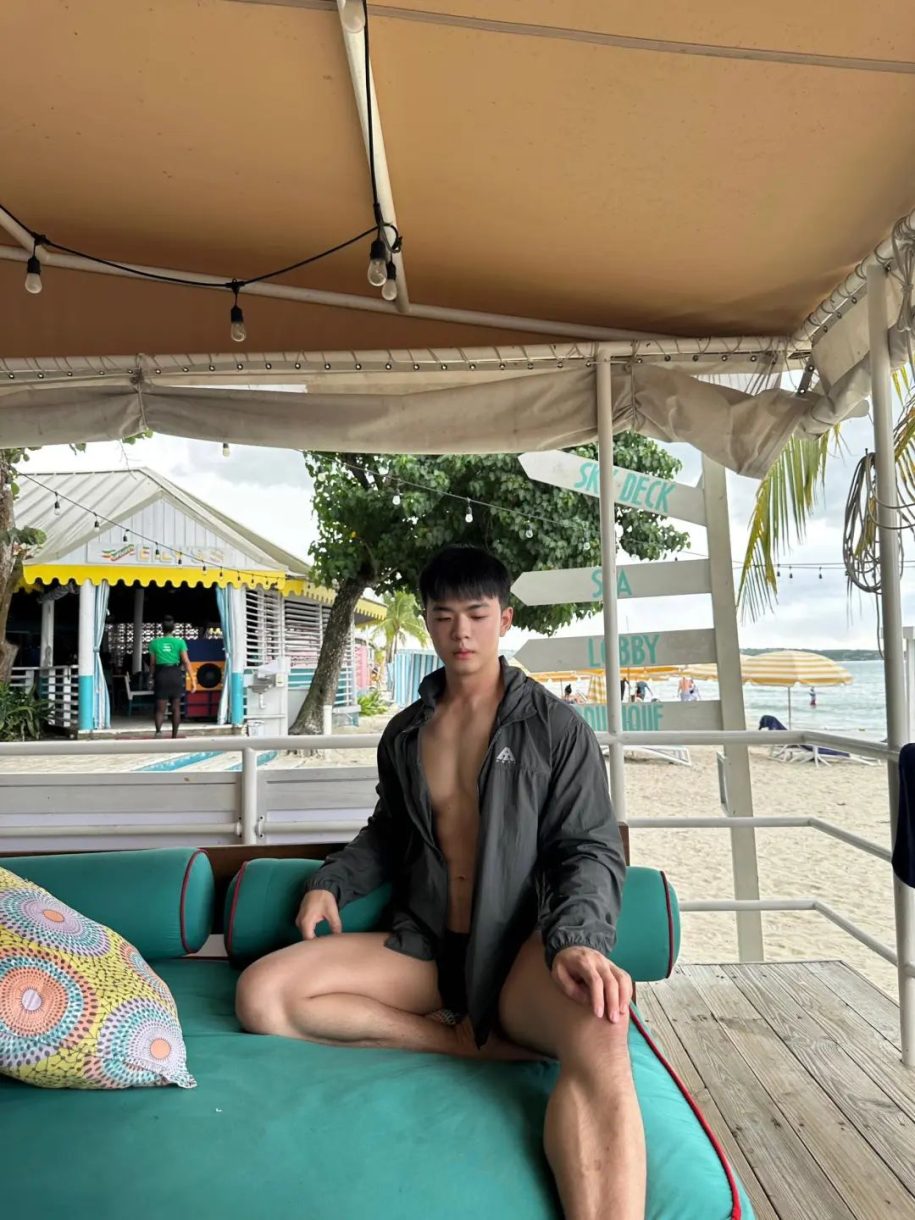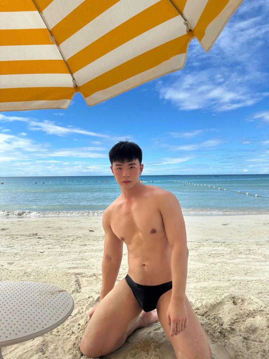 这位小哥最引人注目的,当属他那迷人的身材。他身着黑三角内裤在海边的照片,简直是荷尔蒙爆棚。那薄肌身材,恰到好处的肌肉线条,光滑的皮肤在阳光的照耀下散发着健康的光泽,宛如古希腊神话中的少年。