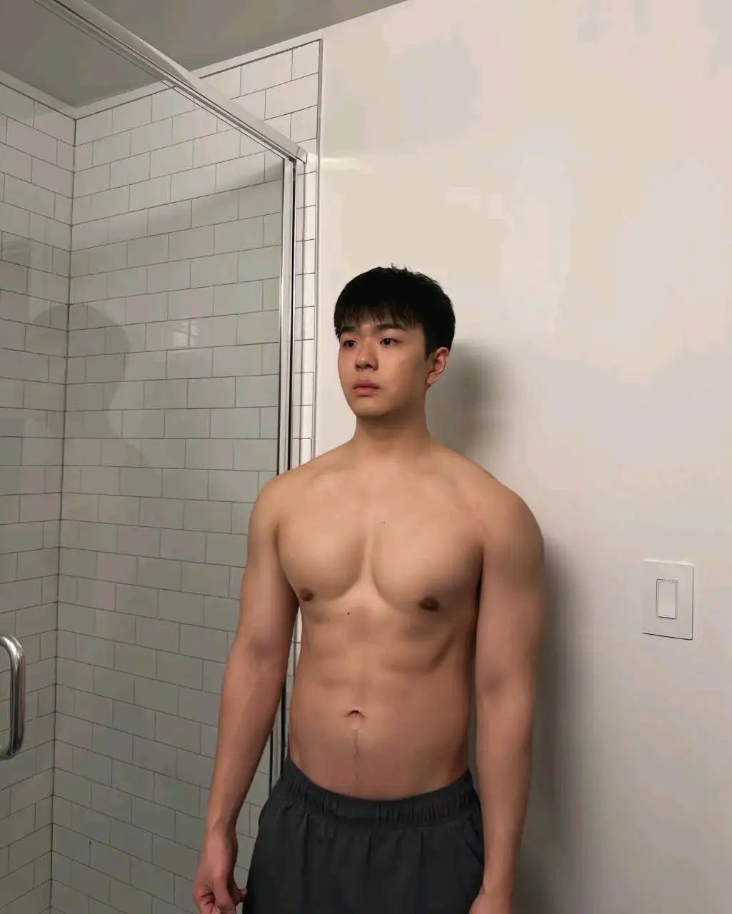 他有着小奶狗般可爱迷人的颜值,笑起来仿佛能驱散世间一切阴霾。他的胸肌十分饱满,虽不是直角肩,但这独特的身材比例却别有一番风味,多了几分邻家男孩的亲近感。