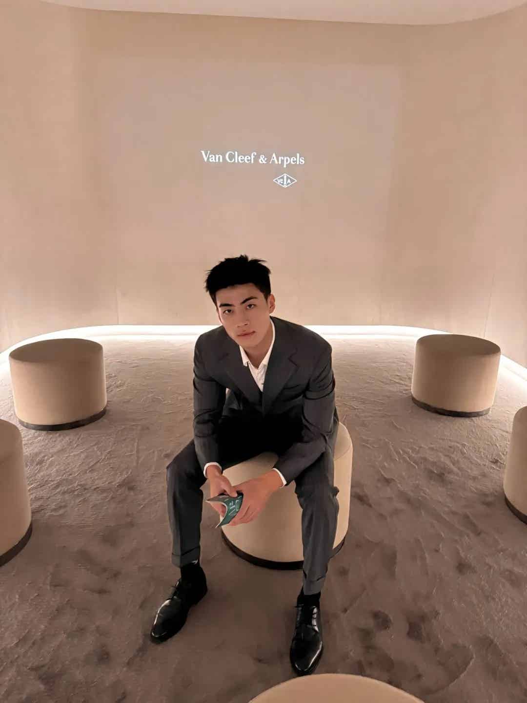 无论是外套的肩线,还是衬衫下摆的合身,他都完美地驾驭了这套正式装扮,展现出成熟与自信的魅力。整个人的气质也在这一瞬间发生了变化,从青春少年转变成了一位成熟稳重、极具男人魅力的帅气青年。