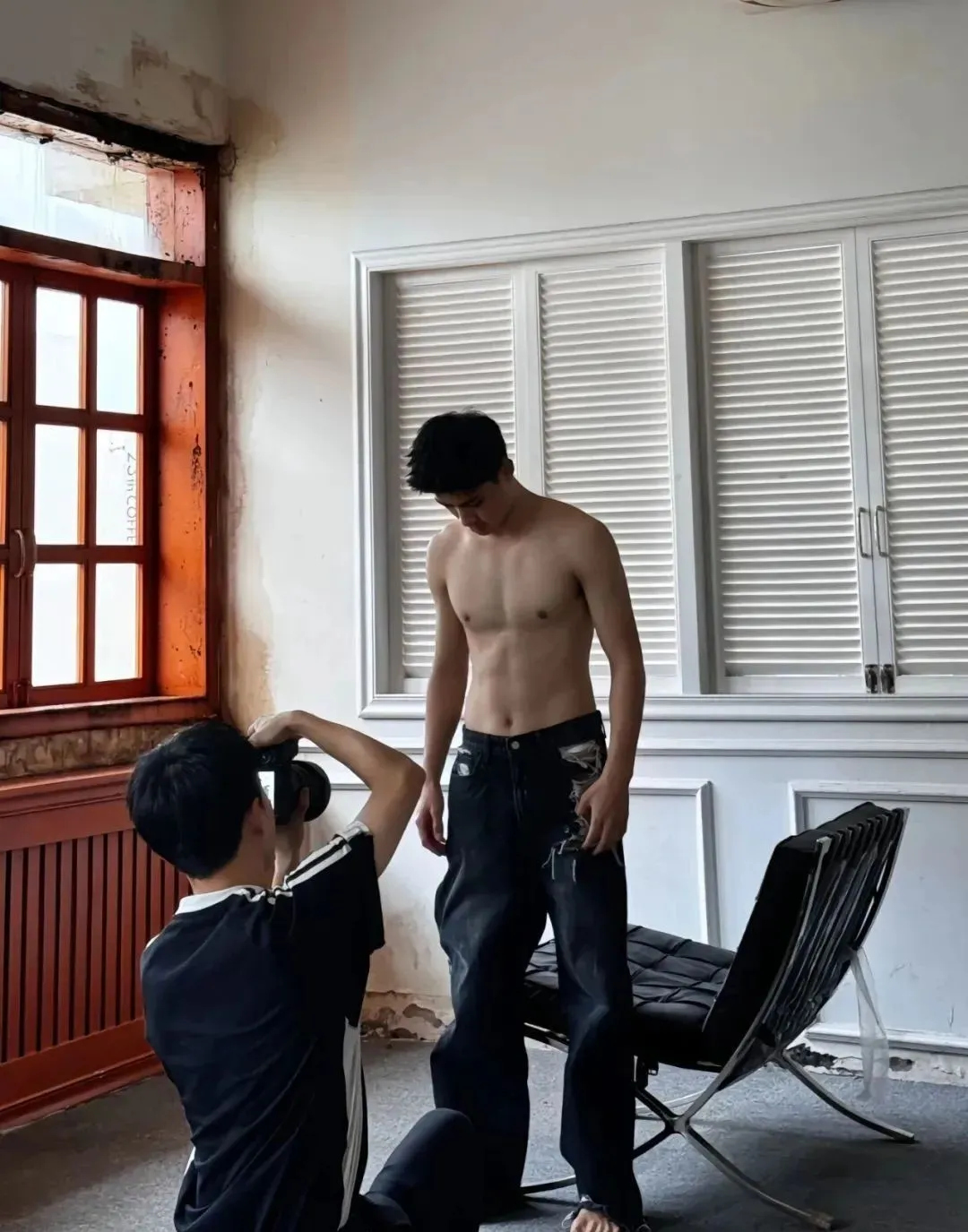 在拍摄写真时,这些肌肉线条更加清晰,肌肤下隐约可见的力量感,让他看起来既性感又充满活力。每一张照片都透露出他健康、阳光的气息,仿佛青春的力量正在从每一寸肌肉中喷薄而出。