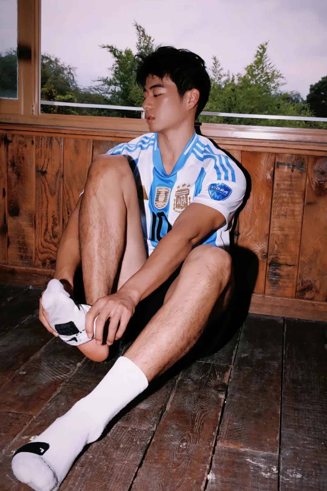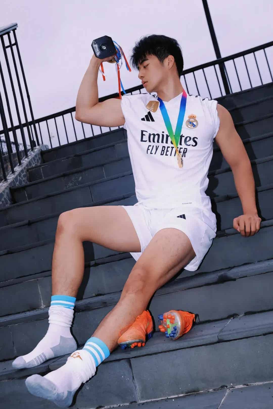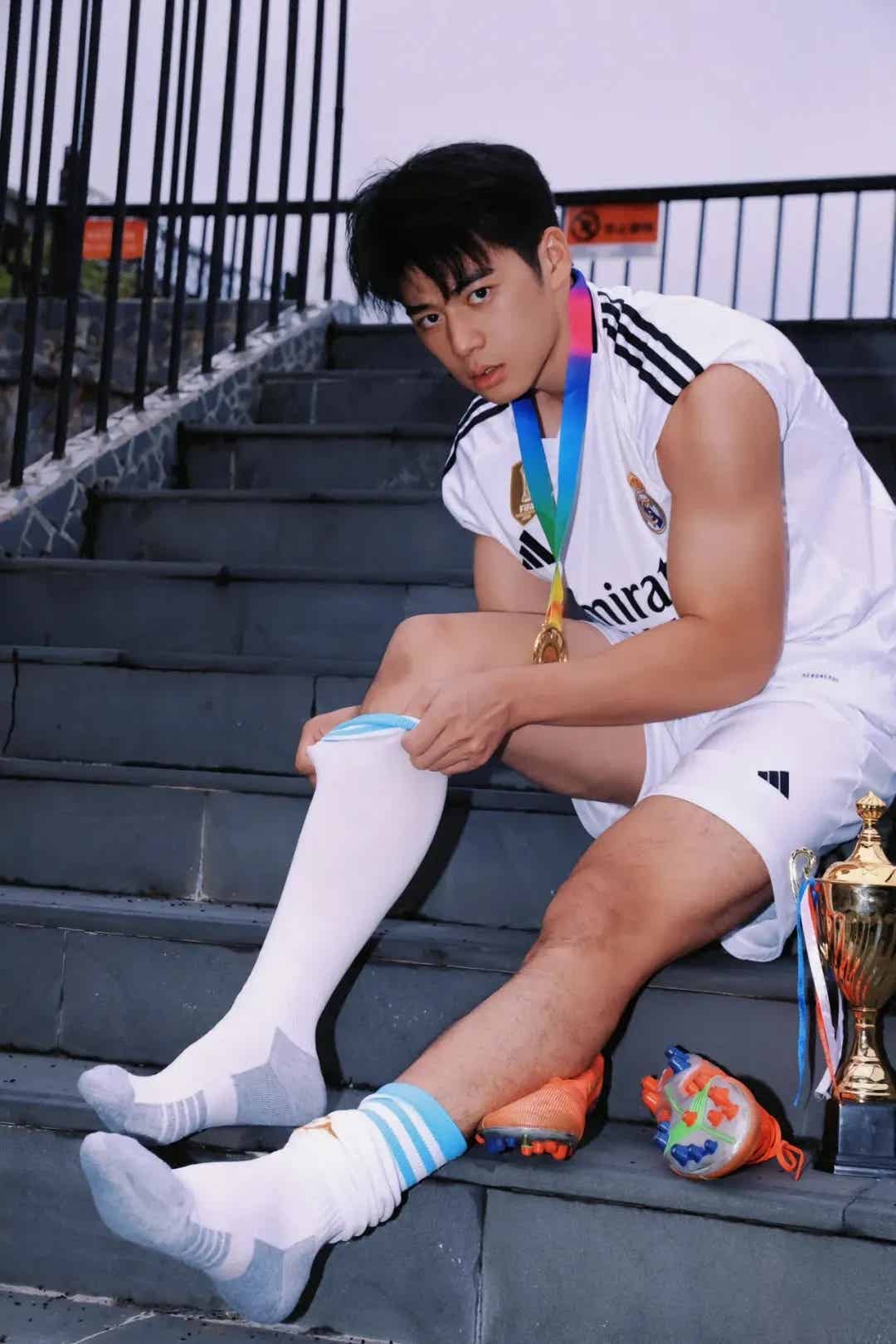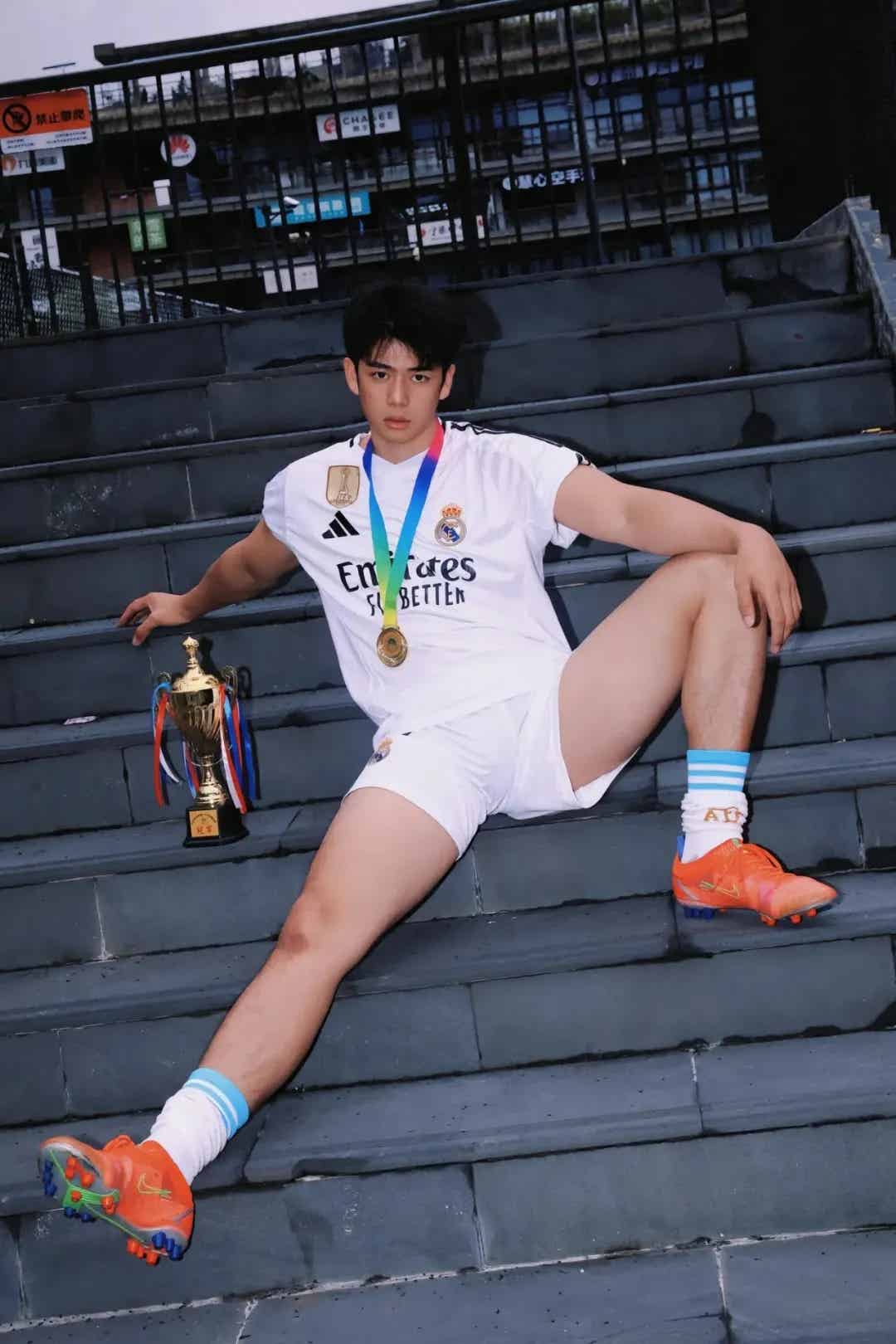 他的写真尤其突出了足球生的魅力:修长的双腿、匀称的身材,加上足球短裤与运动服的点缀,完美展现了运动员健康又阳光的气质。他在写真中无意间流露出的自然与自信,既充满青春的张力,又让人觉得毫不矫饰,真实又迷人。