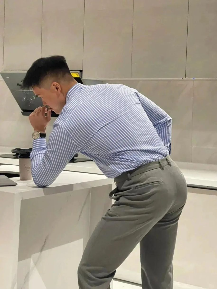 那一身紧实的肌肉,在正装的包裹下若隐若现,透着一种别样的荷尔蒙气息,满满的力量感,真的太欲了。