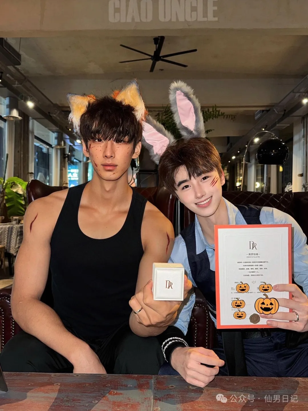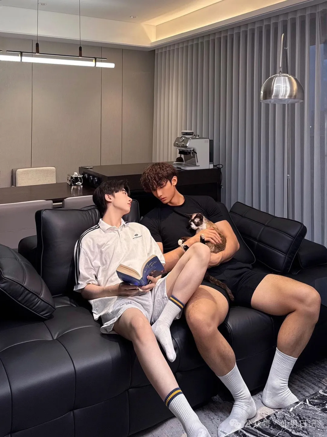有一说一,这已经不是两个人第一次在互联网上秀恩爱了。虽然社交平台上的文案都是兄弟相称,但是懂的都懂,谁家穿着这样,举止亲密呢?不过这两个人确实是养眼,虽然sir放出的是静态图,但是动图里这个体育生弟弟确实是199cm的身高,而且是名副其实的黑皮体育生哦~