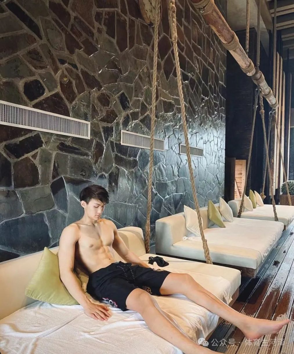还有这个游泳完休息的画面,这个长腿简直无处安放,如果帅哥无处安放的话可以放在阿泽的腿上啊哈哈哈哈。可以的话阿泽简直想睡到阿泽旁边,当然坐在腿上最好了哈哈哈哈。