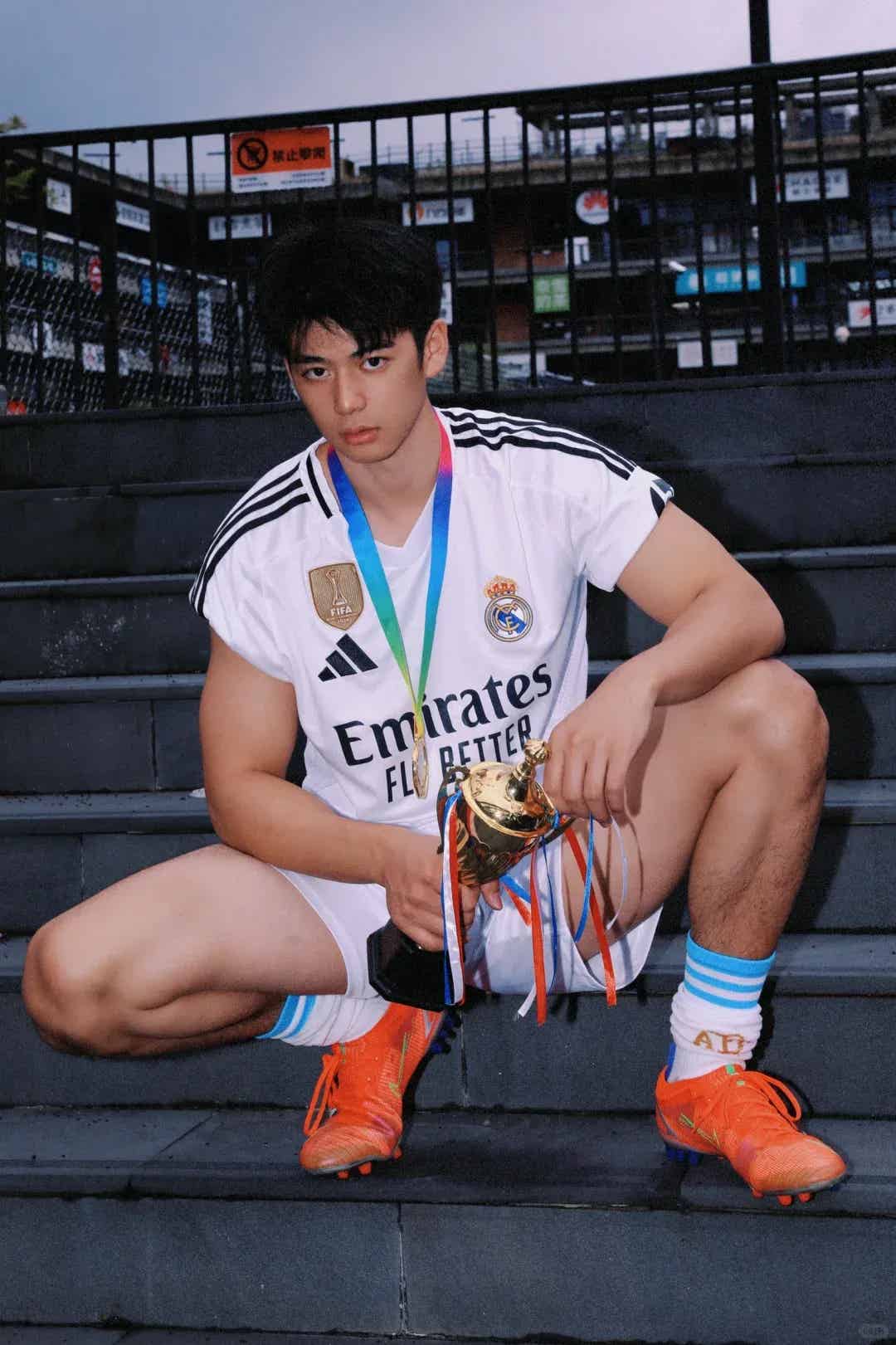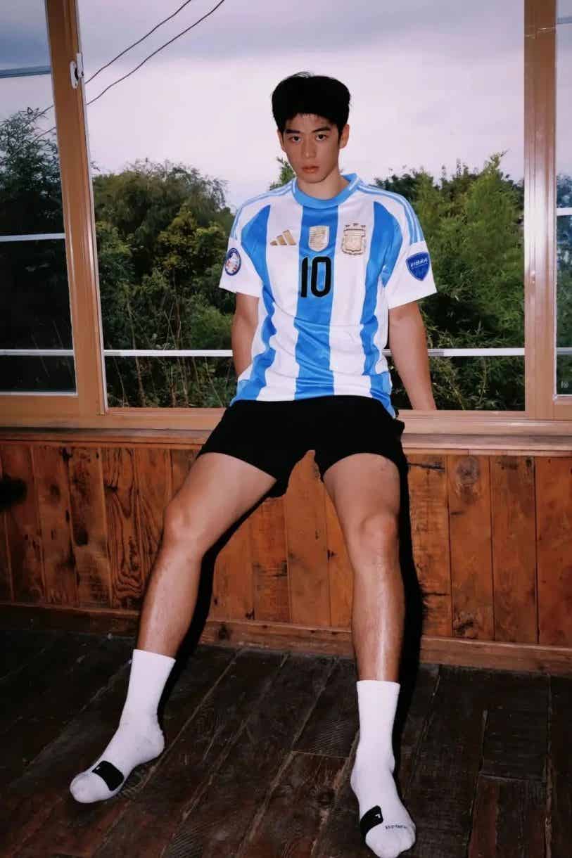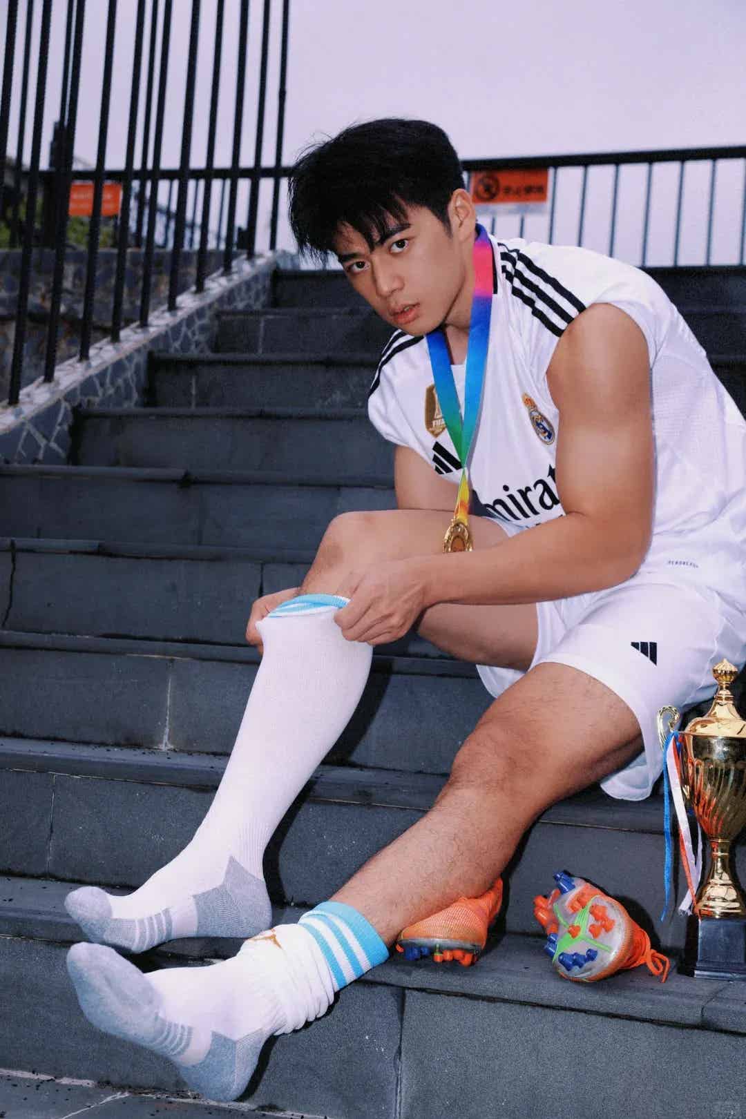 说起这次爆火的原因,男大的这套写真绝对功不可没。穿着白色球服,运动短裤衬托出修长比例,皮肤状态满分,发型干净清爽,整个人既阳光又不失少年气。尤其是在绿茵场的背景下,每一帧画面都仿佛是在说:“来,快来pick我!”